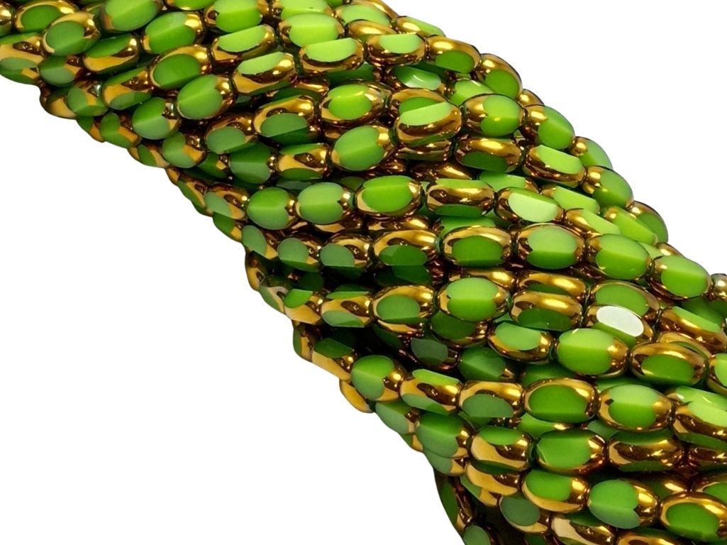1 String has approximately 50 beads. Opaque oval-shaped crystal glass beads are decorative beads made from crystal glass with a solid, non-transparent finish. Their smooth oval shape gives a soft, elegant look, while the opaque surface provides rich, even color. These beads are commonly used in jewelry making, accessories, and craft projects to add a refined and polished appearance.