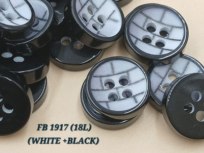 White and Black Circular 18L Four Hole Polyester Buttons
