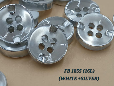 White And Silver Circular 16L Four Hole Polyester Buttons