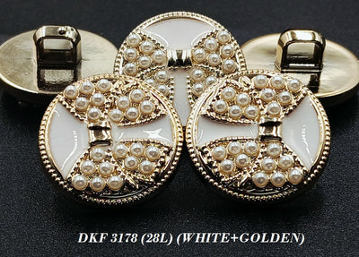 This button, features an elegant golden flower design with a center, making it a perfect choice for ladies' garments. It is commonly used in designer dresses, cardigans, ethnic wear, and fashion accessories where a premium and stylish touch is required. The golden finish adds a luxurious shine, while the pearl gives it a soft, classic appeal. Ideal for enhancing the overall look of high-end garment.