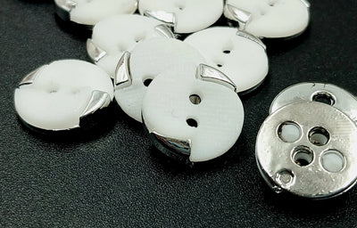 White With Silver Circular 20L Four Hole Polyester Buttons