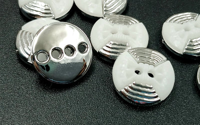 White With Silver Circular 20L Four Hole Polyester Buttons