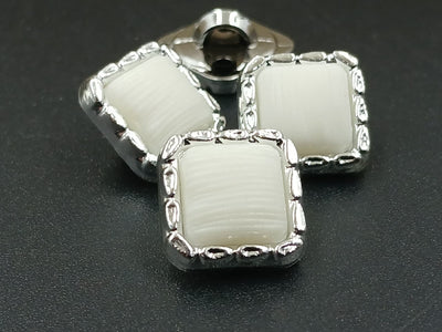 White With Silver Diamond 24L Down Hole Polyester Buttons
