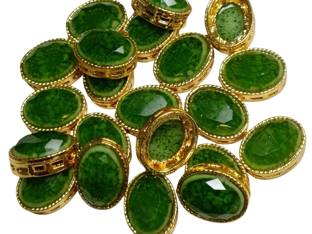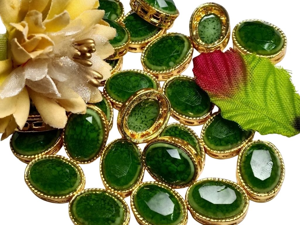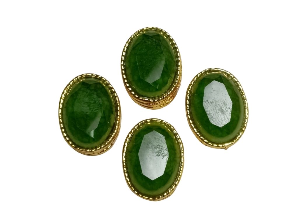 Green Oval Shaped Resin Stones with Metal Catcher