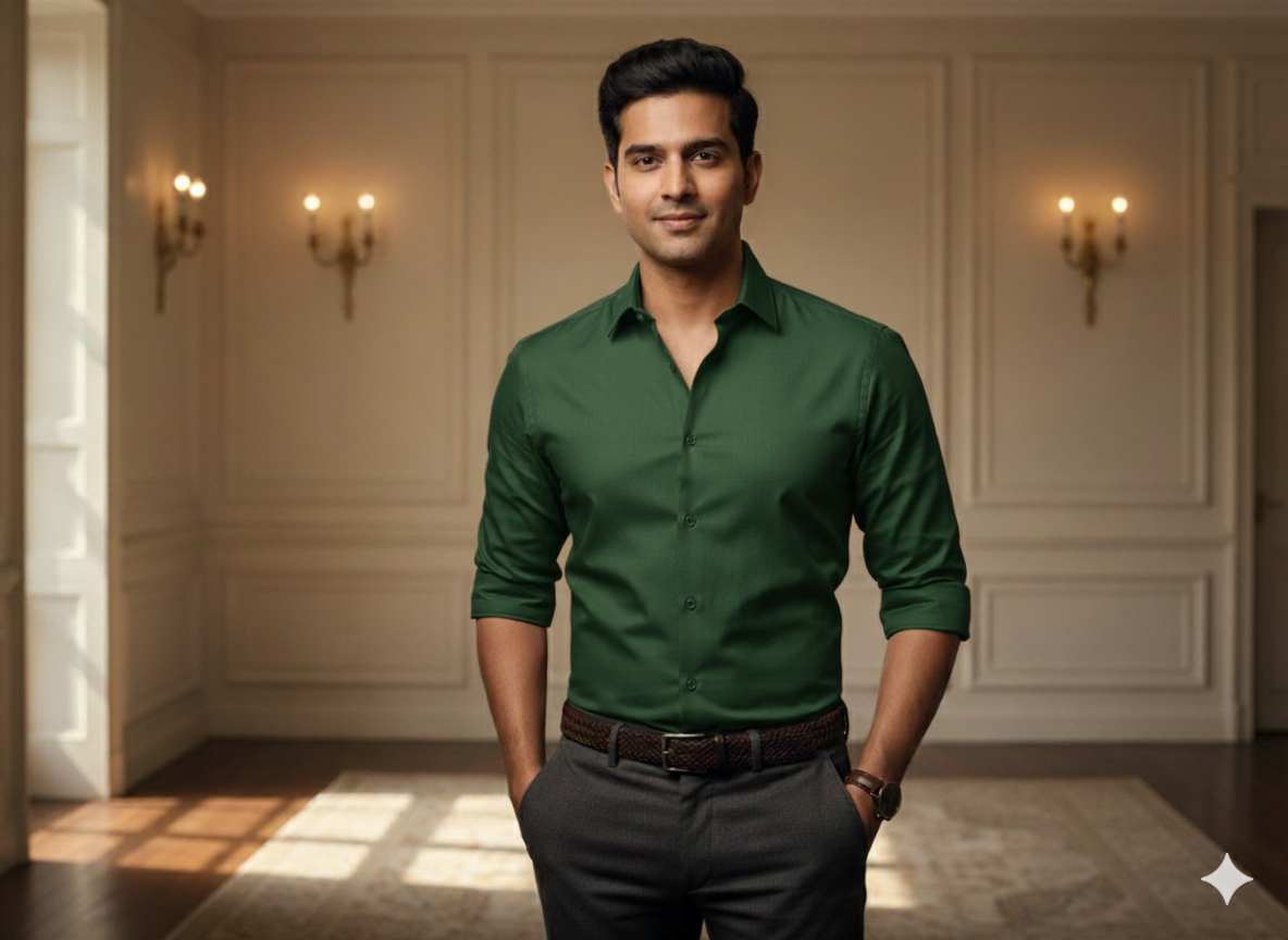 सैक्रामेंटो ग्रीन प्लेन ग्लेज्ड कॉटन फ़ैब्रिक