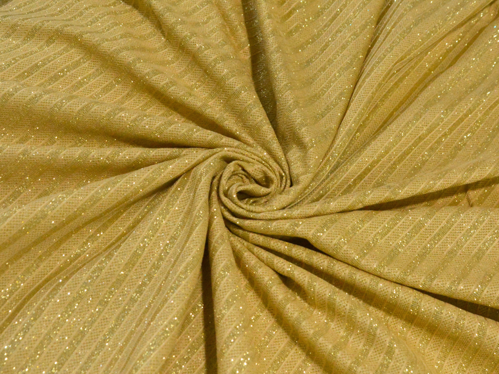 Shimmer stripes bonding fabric is a captivating and glamorous textile known for its glistening surface and versatility. Crafted from synthetic materials like polyester, it features a stripe weave structure that provides durability and flexibility. What distinguishes this fabric is its shimmer effect, often achieved through the incorporation of metallic threads or accents. This feature lends the fabric a sparkling, eye-catching quality, making it ideal for creating luxurious and attention-grabbing fashion pieces. Shimmer stripe bonding fabric is popular in the world of high fashion, frequently used for crafting elegant evening gowns, cocktail dresses, and statement accessories. Its ability to add a touch of sophistication and opulence makes it a preferred choice for those seeking to make a glamorous fashion statement.