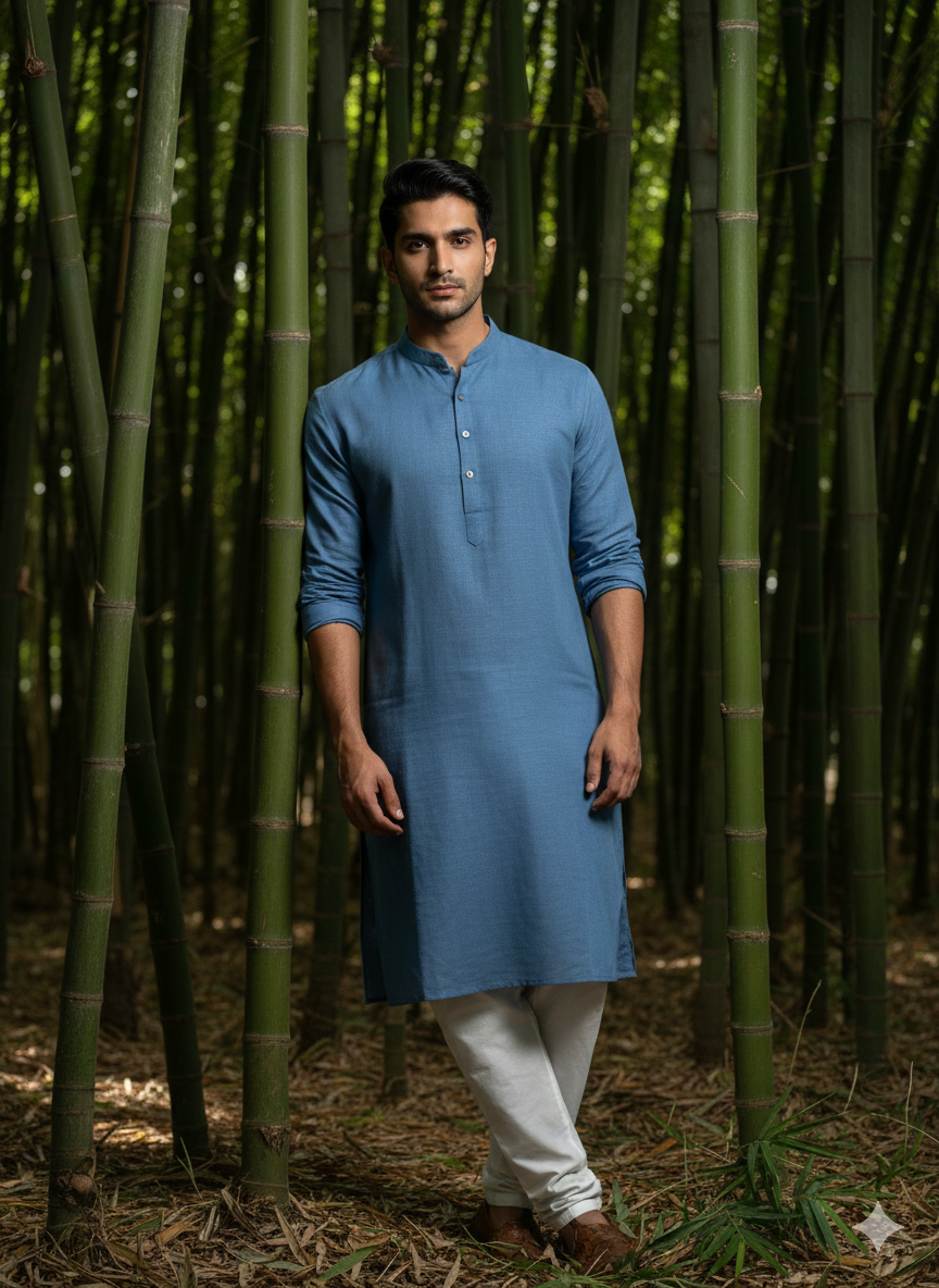Denim Blue 100% Organic Bamboo Cotton Linen