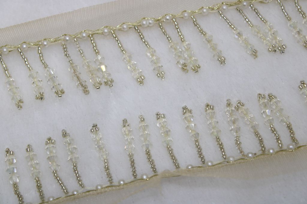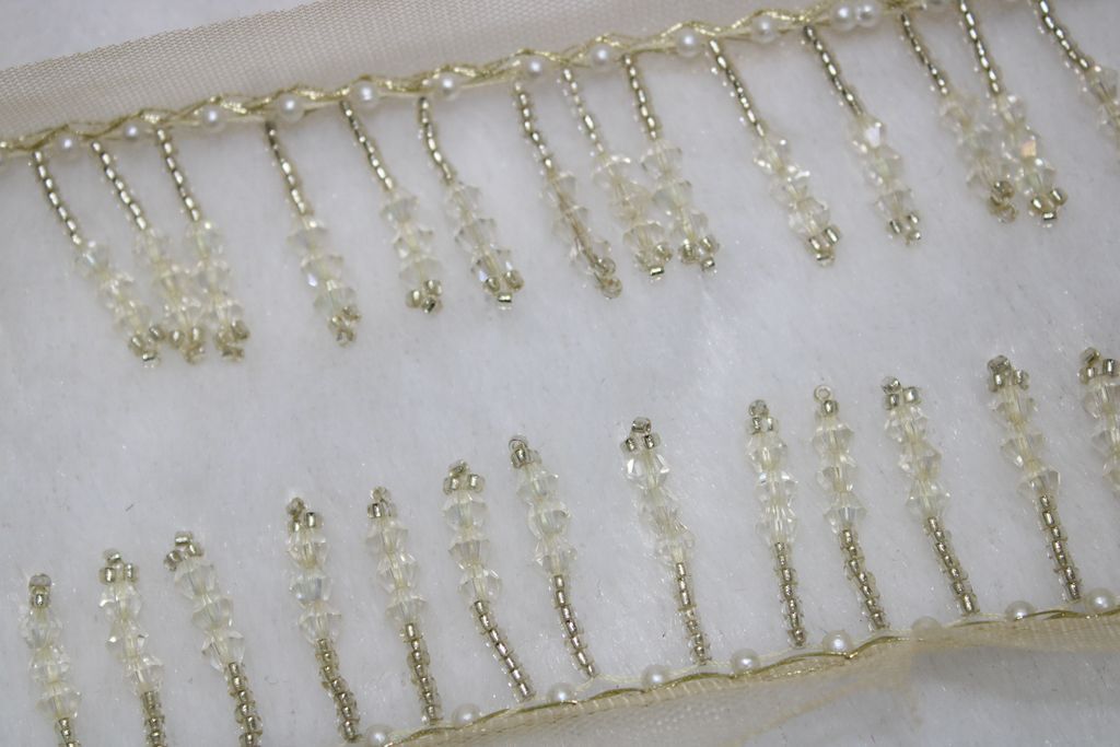 सफ़ेद मोतियों से बनी हस्तकला फ्रिंज लेस