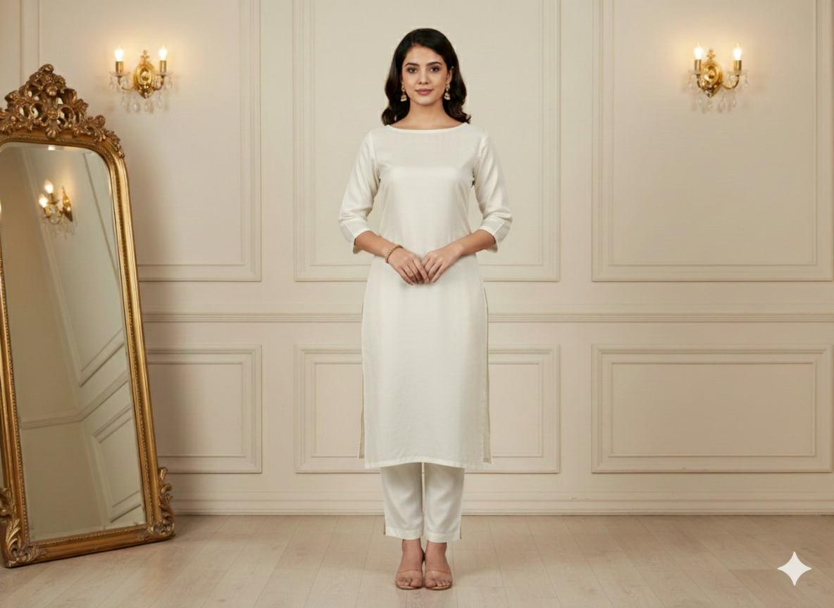 सफ़ेद सादा रंगने योग्य शुद्ध कच्चा रेशम कपड़ा