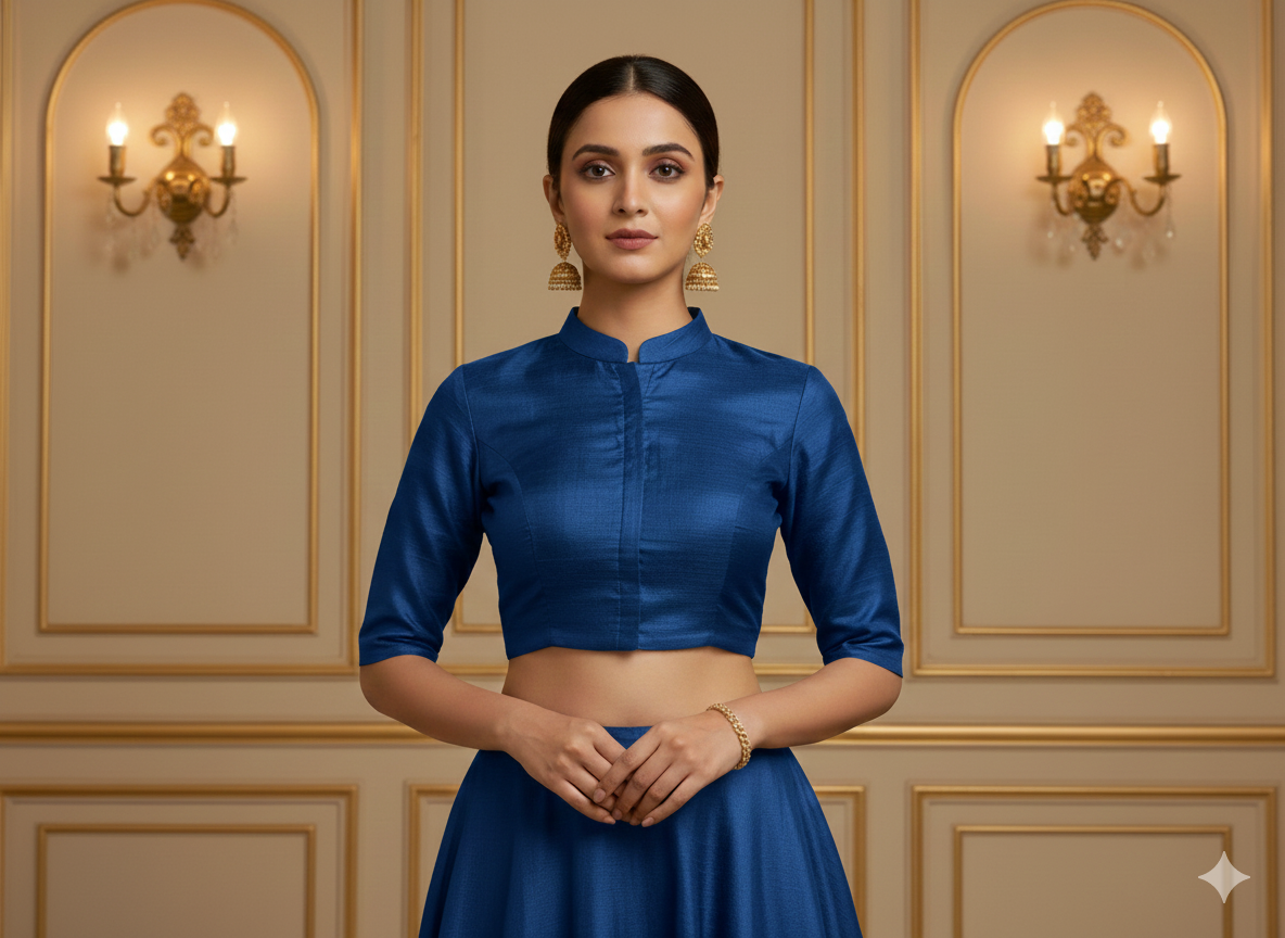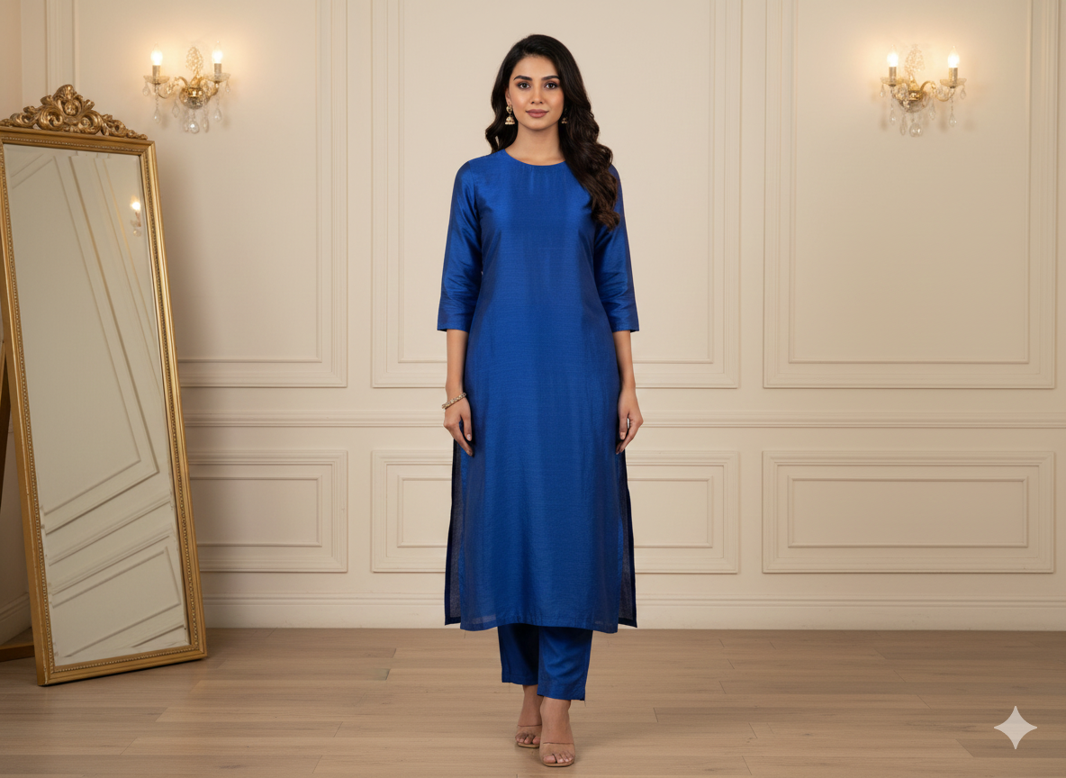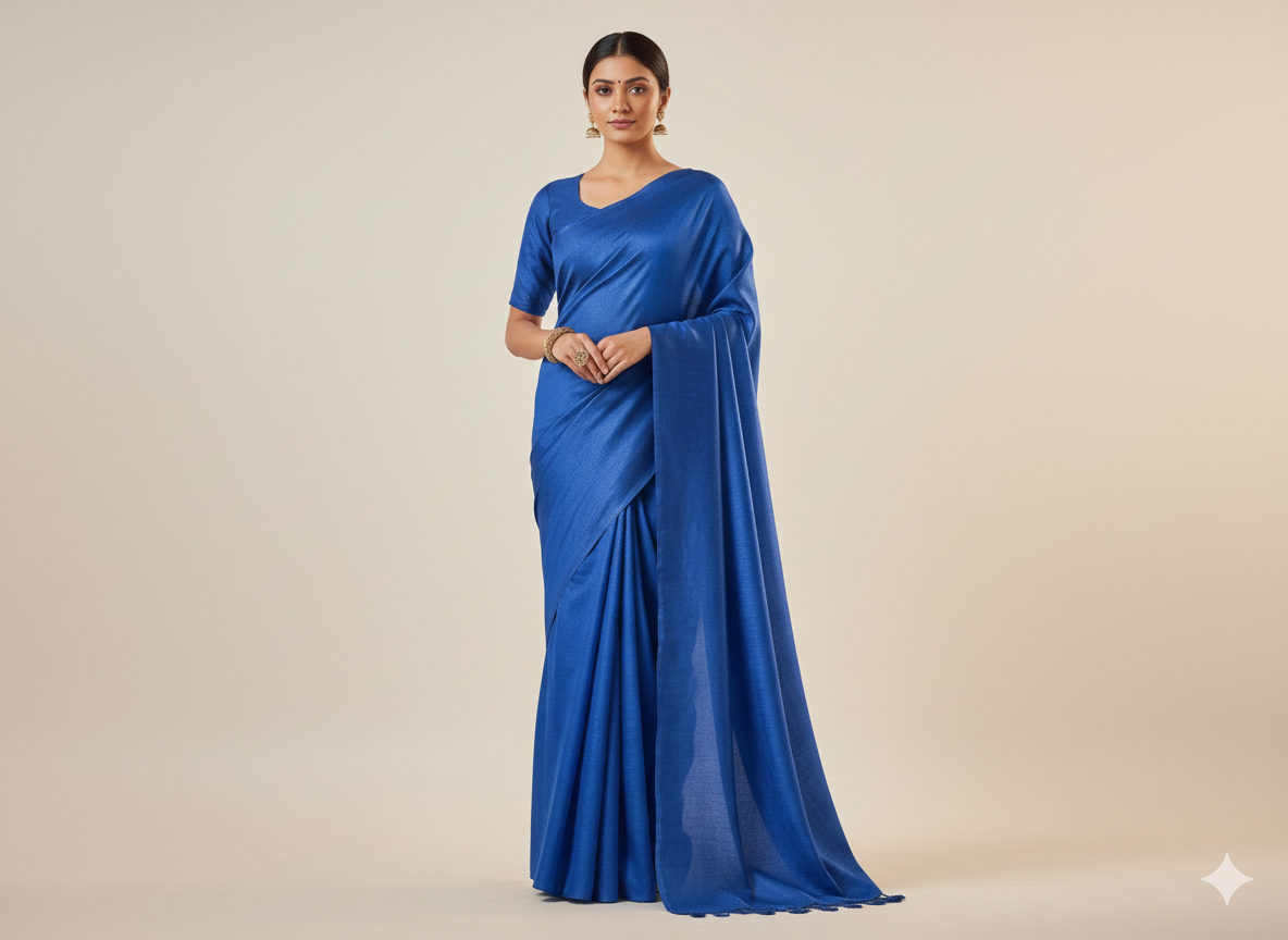 रॉयल ब्लू प्लेन बैंगलोर रॉ सिल्क फैब्रिक
