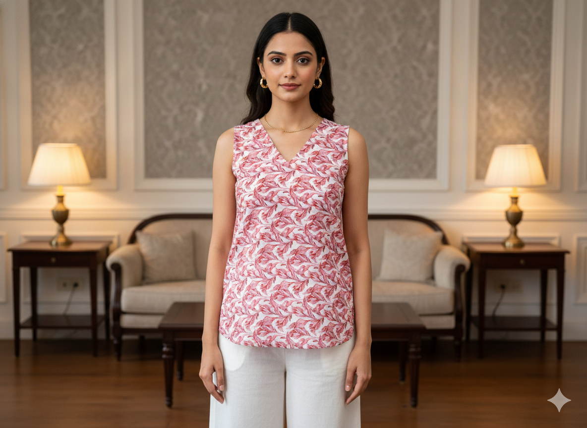 सफ़ेद और गुलाबी शुद्ध मुल कॉटन फ़ैब्रिक