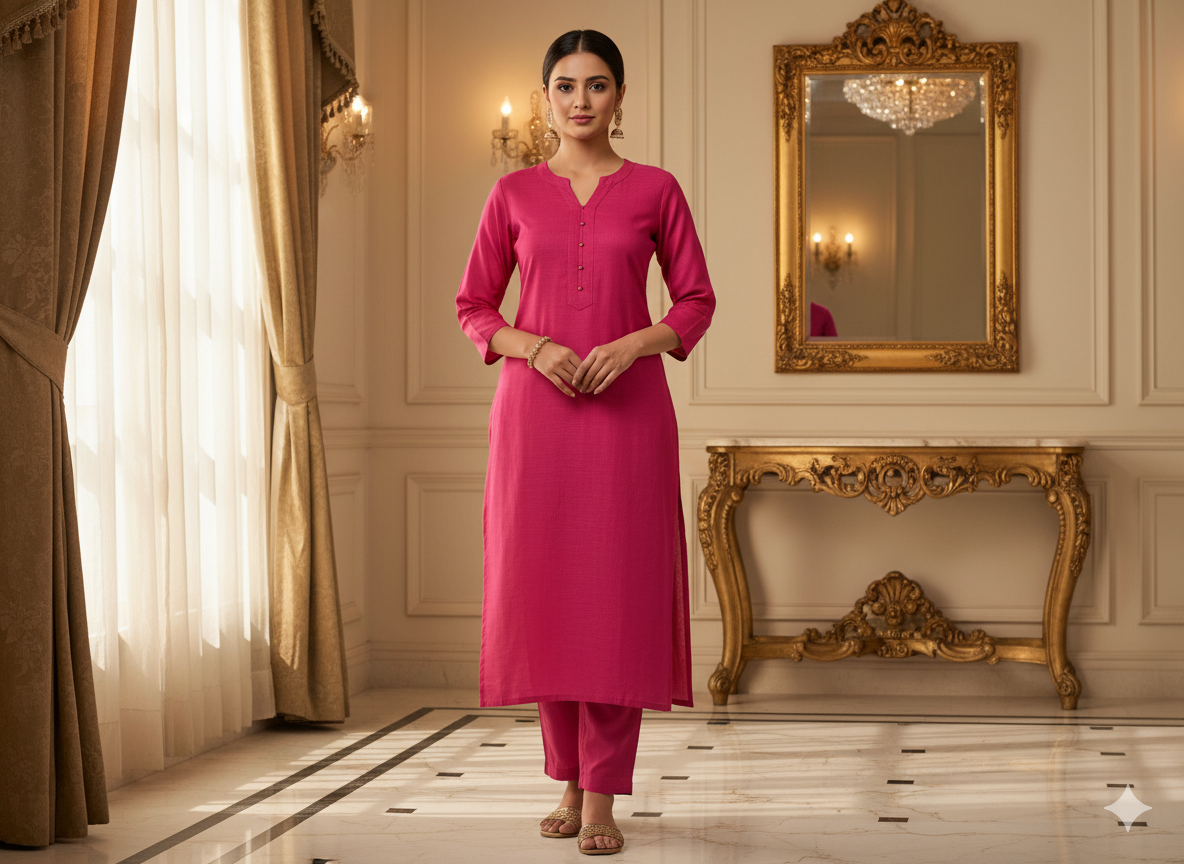पॉलिएस्टर कॉटन फ़ैब्रिक एक बहुमुखी मिश्रण है जो कॉटन की सांस लेने की क्षमता को पॉलिएस्टर के स्थायित्व के साथ जोड़ता है। यह फ़ैब्रिक कपड़ों, होम टेक्सटाइल और असबाब सहित कई तरह के अनुप्रयोगों के लिए आदर्श है। इसकी मुलायम बनावट और आसान देखभाल के गुण इसे रोज़ाना पहनने और बिस्तर के लिए पसंदीदा बनाते हैं। पॉलिएस्टर घटक शिकन प्रतिरोध और दीर्घायु को बढ़ाता है, जबकि कपास आराम और नमी अवशोषण सुनिश्चित करता है। स्टाइलिश, लंबे समय तक चलने वाले परिधान और साज-सज्जा बनाने के लिए बिल्कुल सही, यह फ़ैब्रिक गुणवत्ता और सुविधा चाहने वालों के लिए एक व्यावहारिक विकल्प है। अपने अगले सिलाई प्रोजेक्ट के लिए पॉलिएस्टर कॉटन फ़ैब्रिक ऑनलाइन खरीदें और आराम और स्थायित्व के सही संतुलन का अनुभव करें।