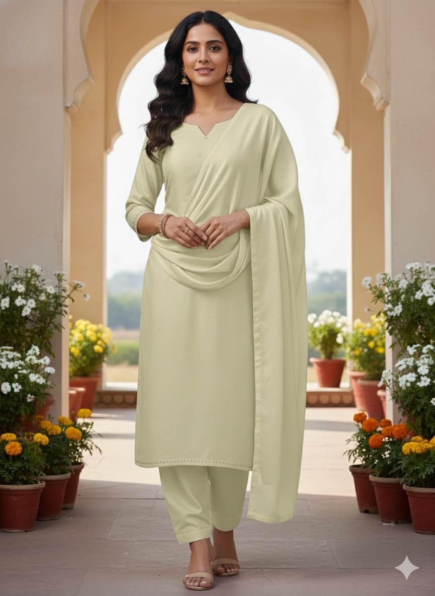 Cream Pastel Chanderi Silk Fabric