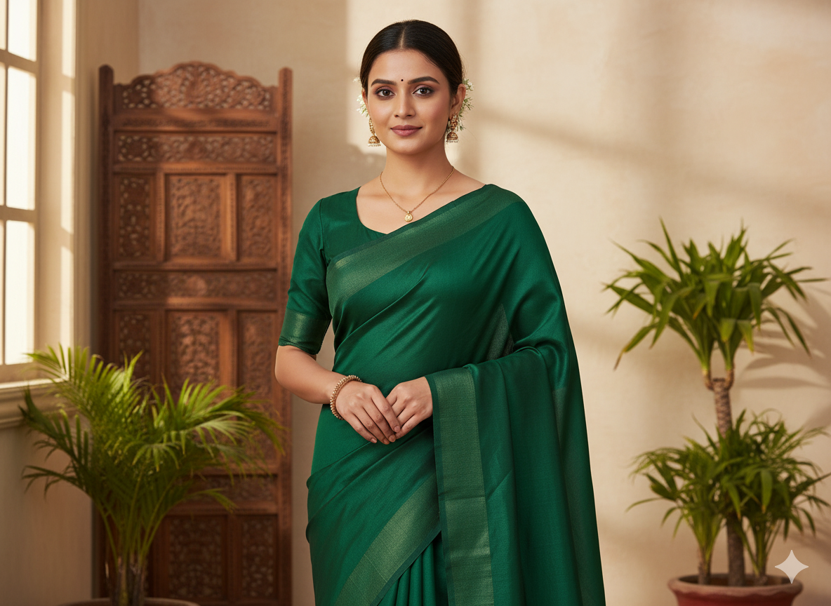 गहरे हरे रंग का सादा शुद्ध विस्कोस गाजी सिल्क कपड़ा