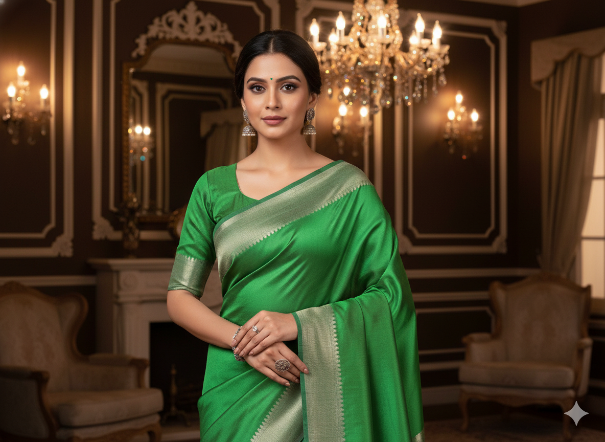 वन हरा सादा शुद्ध विस्कोस गाजी रेशम कपड़ा