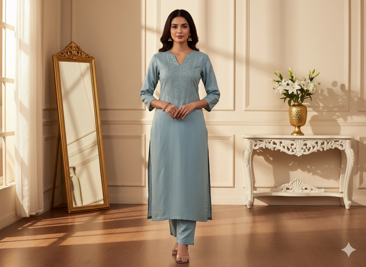 प्लेन प्योर विस्कोस गाजी सिल्क फैब्रिक एक शानदार, मुलायम कपड़ा है जो रेशम की नाजुक चमक को विस्कोस की चिकनी बनावट के साथ जोड़ता है। गाजी सिल्क, एक प्रकार का उच्च गुणवत्ता वाला रेशम है, जिसे एक सूक्ष्म चमकदार फिनिश के साथ एक समृद्ध, चिकनी सतह बनाने के लिए बुना जाता है। यह कपड़ा हल्का है, फिर भी इसमें घना, संरचित एहसास है, जो इसे औपचारिक और अर्ध-औपचारिक दोनों तरह के परिधानों में खूबसूरती से लपेटने के लिए आदर्श बनाता है।