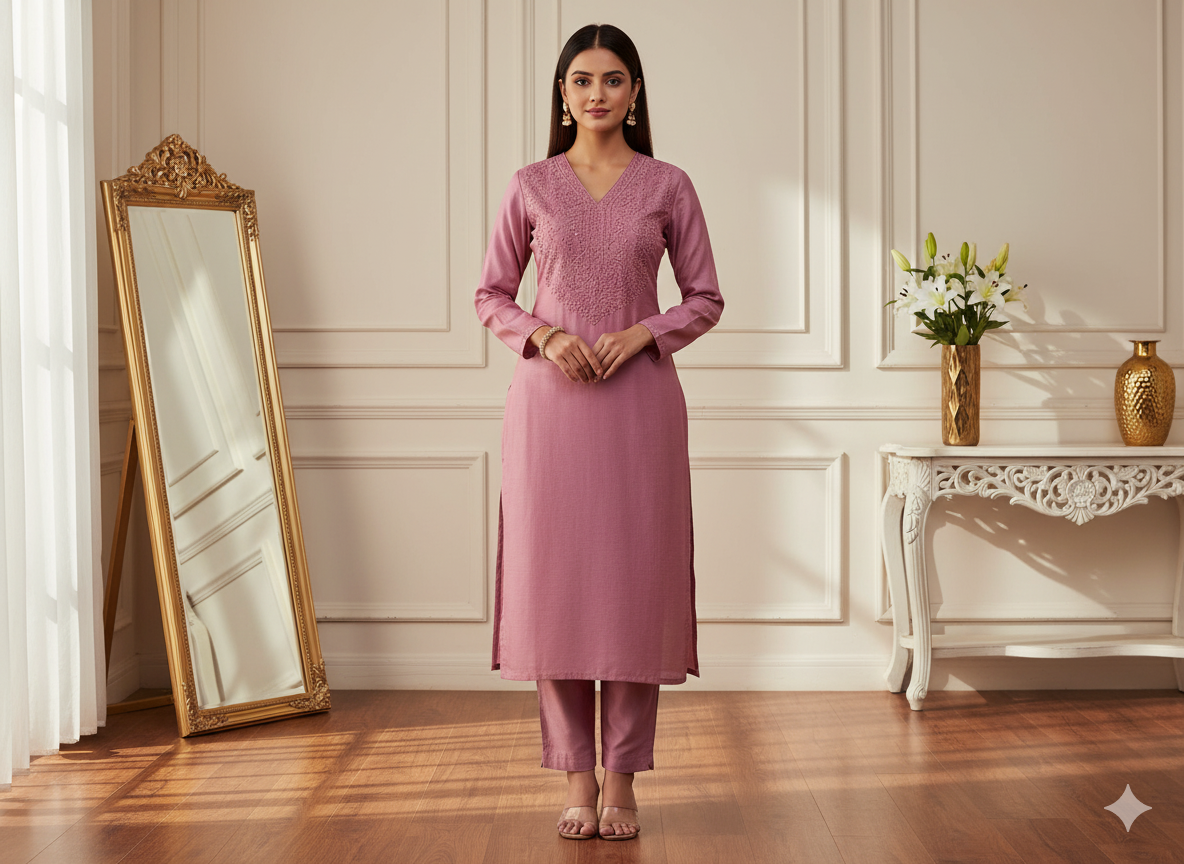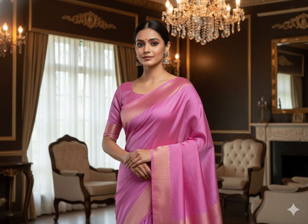 प्लेन प्योर विस्कोस गाजी सिल्क फैब्रिक एक शानदार, मुलायम कपड़ा है जो रेशम की नाजुक चमक को विस्कोस की चिकनी बनावट के साथ जोड़ता है। गाजी सिल्क, एक प्रकार का उच्च गुणवत्ता वाला रेशम है, जिसे एक सूक्ष्म चमकदार फिनिश के साथ एक समृद्ध, चिकनी सतह बनाने के लिए बुना जाता है। यह कपड़ा हल्का है, फिर भी इसमें घना, संरचित एहसास है, जो इसे औपचारिक और अर्ध-औपचारिक दोनों तरह के परिधानों में खूबसूरती से लपेटने के लिए आदर्श बनाता है।