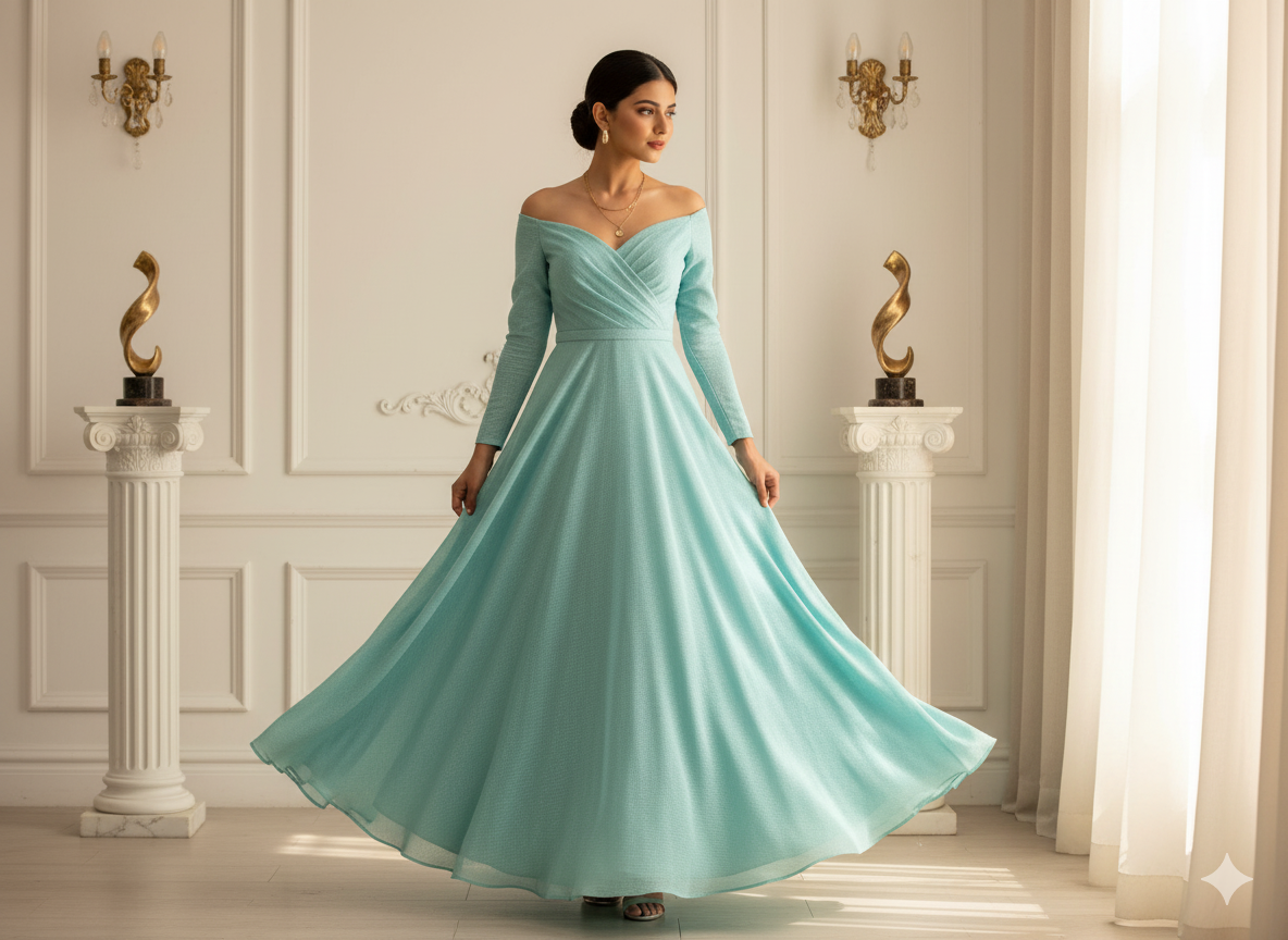 जॉर्जेट एक हल्का, पारदर्शी कपड़ा है जो अपनी बहती हुई ड्रेप और सुंदर बनावट के लिए बेशकीमती है। रेशम, पॉलिएस्टर या रेयान फाइबर से तैयार, यह थोड़ी झुर्रीदार सतह का दावा करता है, जो इसे एक सूक्ष्म, लहरदार प्रभाव देता है। यह शानदार कपड़ा अपनी बहुमुखी प्रतिभा के लिए फैशन में प्रिय है, जो खुद को बहने वाली ड्रेस, ब्लाउज और स्कार्फ के लिए खूबसूरती से उधार देता है। इसकी नाजुक लेकिन लचीली प्रकृति इसे औपचारिक पोशाक और दुल्हन के पहनावे के लिए एक लोकप्रिय विकल्प बनाती है, जहाँ यह अलौकिक रोमांस का स्पर्श जोड़ता है। जॉर्जेट का नरम, हवादार एहसास और सुंदर चाल इसे ऐसे डिजाइनरों के बीच पसंदीदा बनाती है जो ऐसे परिधान बनाना चाहते हैं जो सहज परिष्कार और कालातीत आकर्षण को बढ़ाते हैं।