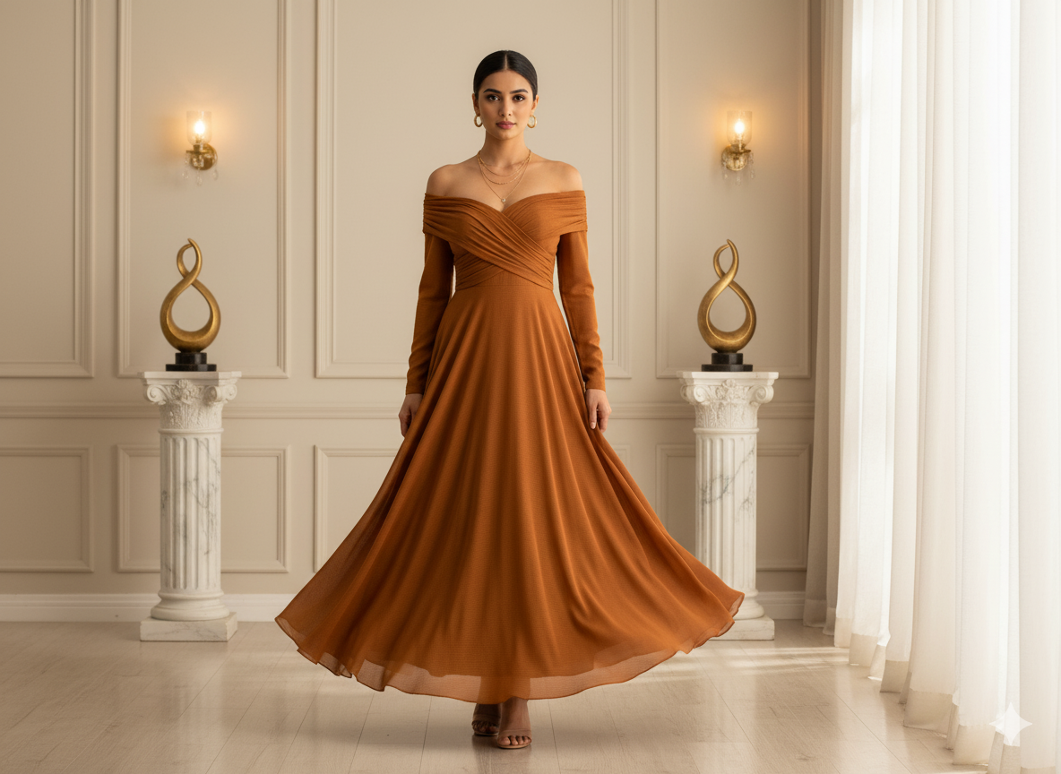 जॉर्जेट एक हल्का, पारदर्शी कपड़ा है जो अपनी बहती हुई ड्रेप और सुंदर बनावट के लिए बेशकीमती है। रेशम, पॉलिएस्टर या रेयान फाइबर से तैयार, यह थोड़ी झुर्रीदार सतह का दावा करता है, जो इसे एक सूक्ष्म, लहरदार प्रभाव देता है। यह शानदार कपड़ा अपनी बहुमुखी प्रतिभा के लिए फैशन में प्रिय है, जो खुद को बहने वाली ड्रेस, ब्लाउज और स्कार्फ के लिए खूबसूरती से उधार देता है। इसकी नाजुक लेकिन लचीली प्रकृति इसे औपचारिक पोशाक और दुल्हन के पहनावे के लिए एक लोकप्रिय विकल्प बनाती है, जहाँ यह अलौकिक रोमांस का स्पर्श जोड़ता है। जॉर्जेट का नरम, हवादार एहसास और सुंदर चाल इसे ऐसे डिजाइनरों के बीच पसंदीदा बनाती है जो ऐसे परिधान बनाना चाहते हैं जो सहज परिष्कार और कालातीत आकर्षण को बढ़ाते हैं।