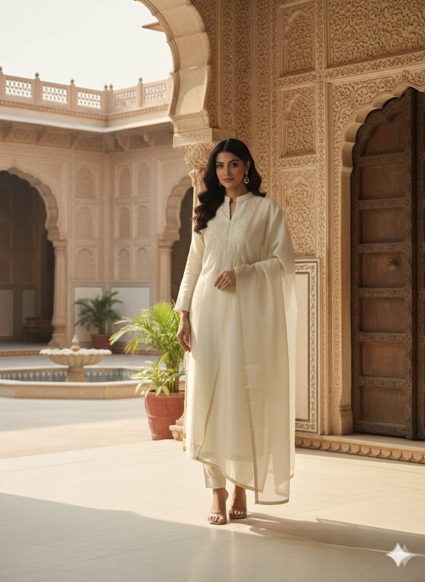 This chanderi silk fabric is perfect for summer dresses. Its smooth and silky texture adds a touch of luxury, while the mint green color adds a refreshing pop of color. Made with high-quality materials, this fabric is sure to elevate any outfit.
