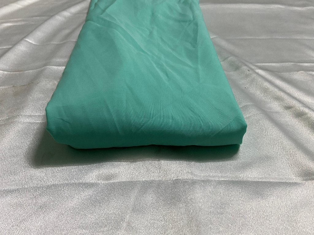 Enhance your creations with this Premium Sea Green Polyester Crepe fabric, known for its smooth feel, graceful fall, and wrinkle-resistant quality. The lightweight yet durable texture offers excellent draping, making it perfect for contemporary and ethnic designs. Its breathable and easy-to-maintain nature ensures comfort for long hours, while the soothing sea green shade adds freshness and elegance to every outfit.