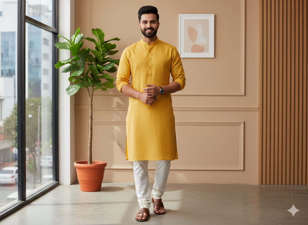 पीला सादा प्रीमियम कॉटन लिनन कपड़ा