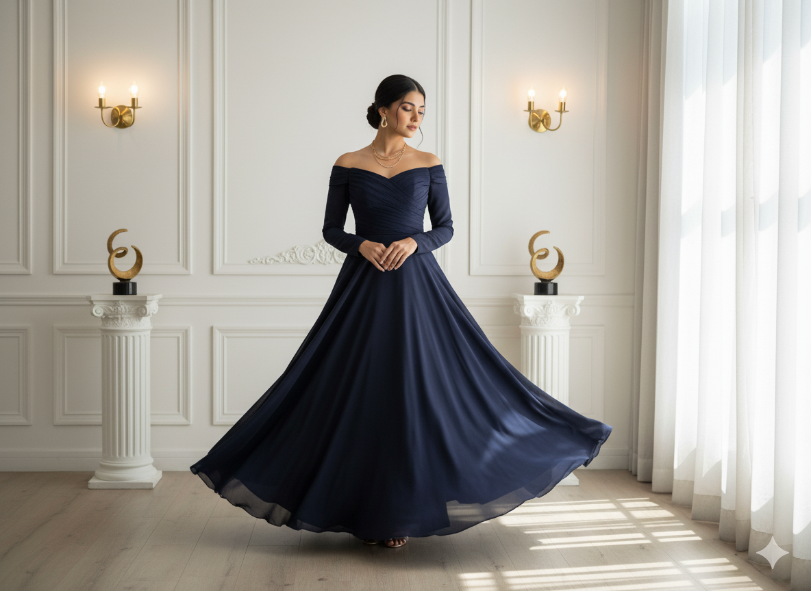 जॉर्जेट एक हल्का, पारदर्शी कपड़ा है जो अपनी बहती हुई ड्रेप और सुंदर बनावट के लिए बेशकीमती है। रेशम, पॉलिएस्टर या रेयान फाइबर से तैयार, यह थोड़ी झुर्रीदार सतह का दावा करता है, जो इसे एक सूक्ष्म, लहरदार प्रभाव देता है। यह शानदार कपड़ा अपनी बहुमुखी प्रतिभा के लिए फैशन में प्रिय है, जो खुद को बहने वाली ड्रेस, ब्लाउज और स्कार्फ के लिए खूबसूरती से उधार देता है। इसकी नाजुक लेकिन लचीली प्रकृति इसे औपचारिक पोशाक और दुल्हन के पहनावे के लिए एक लोकप्रिय विकल्प बनाती है, जहाँ यह अलौकिक रोमांस का स्पर्श जोड़ता है। जॉर्जेट का नरम, हवादार एहसास और सुंदर चाल इसे ऐसे डिजाइनरों के बीच पसंदीदा बनाती है जो ऐसे परिधान बनाना चाहते हैं जो सहज परिष्कार और कालातीत आकर्षण को बढ़ाते हैं।