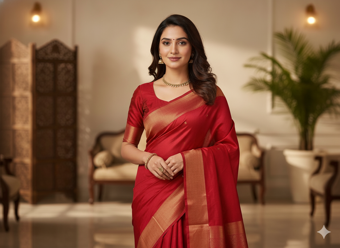 लाल सादा शुद्ध विस्कोस गाजी सिल्क कपड़ा