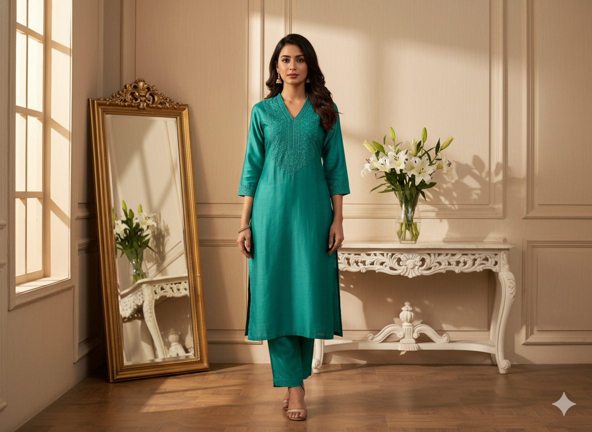प्लेन प्योर विस्कोस गाजी सिल्क फैब्रिक एक शानदार, मुलायम कपड़ा है जो रेशम की नाजुक चमक को विस्कोस की चिकनी बनावट के साथ जोड़ता है। गाजी सिल्क, एक प्रकार का उच्च गुणवत्ता वाला रेशम है, जिसे एक सूक्ष्म चमकदार फिनिश के साथ एक समृद्ध, चिकनी सतह बनाने के लिए बुना जाता है। यह कपड़ा हल्का है, फिर भी इसमें घना, संरचित एहसास है, जो इसे औपचारिक और अर्ध-औपचारिक दोनों तरह के परिधानों में खूबसूरती से लपेटने के लिए आदर्श बनाता है।
