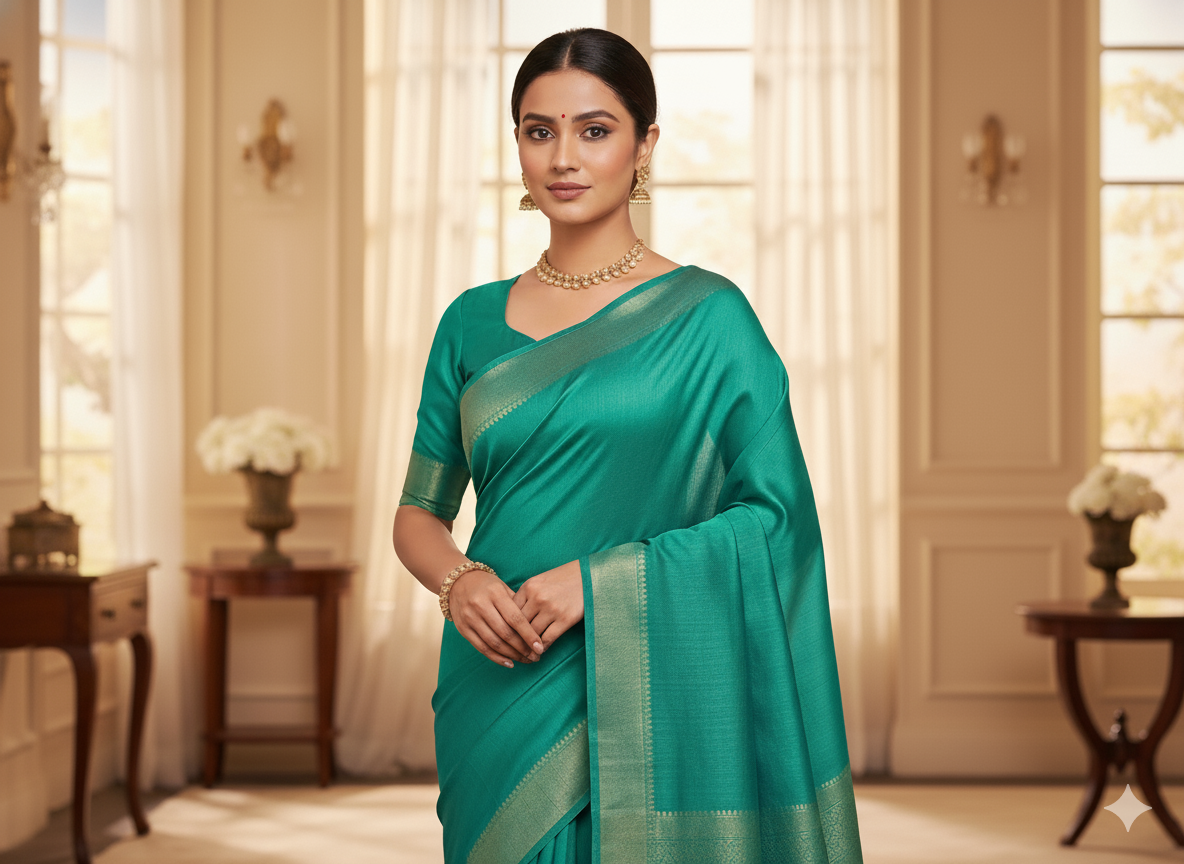 समुद्री हरा सादा शुद्ध विस्कोस गाजी रेशम कपड़ा