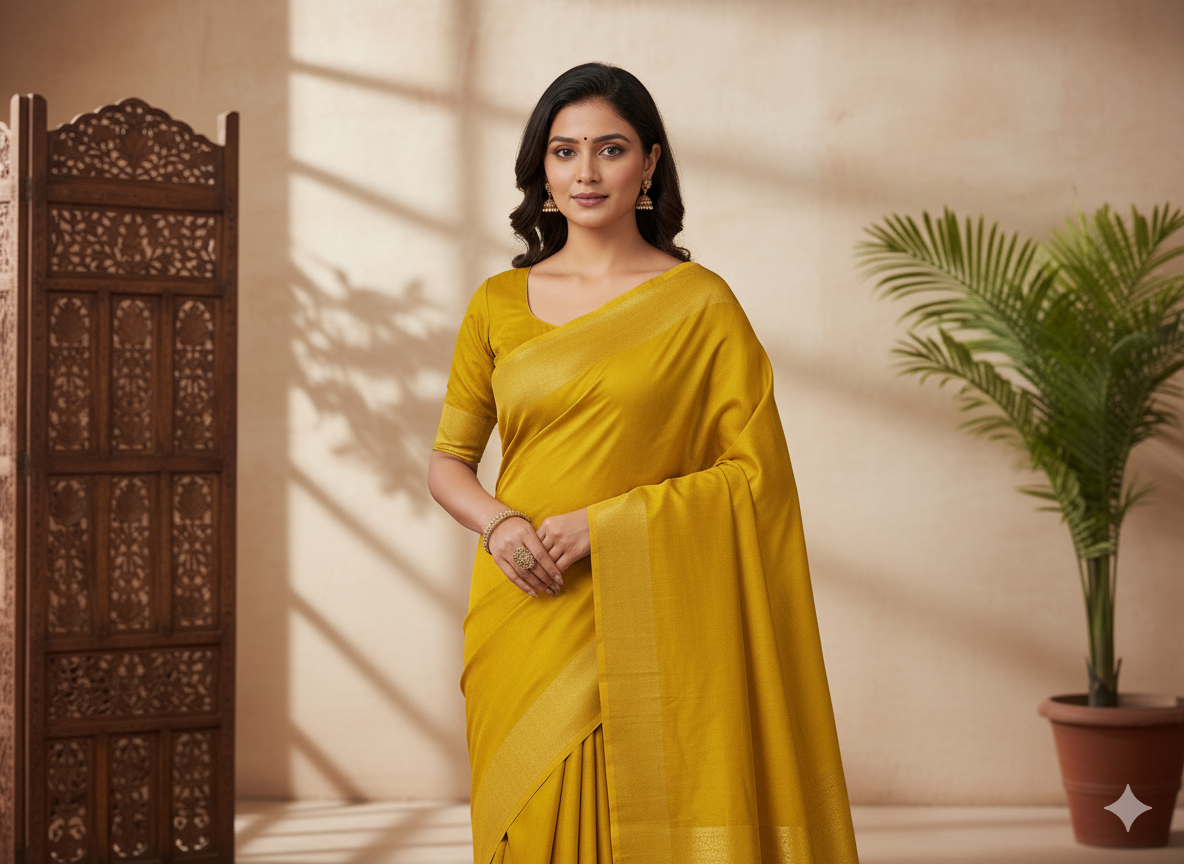 सनी पीला सादा विस्कोस गाजी सिल्क कपड़ा