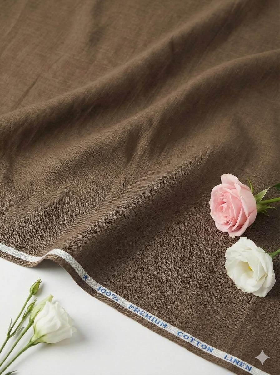 Made with luxurious premium cotton linen, this walnut brown fabric is perfect for adding a touch of sophistication to any outfit. The irresistible color and high-quality material ensure that you make a statement with every wear. Elevate your style and stand out from the crowd with this must-have fabric.