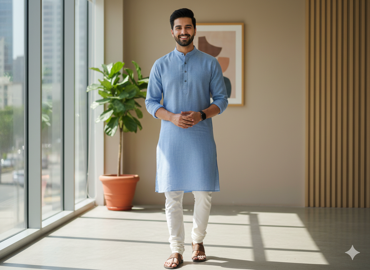 बेबी ब्लू प्लेन प्रीमियम कॉटन लिनन फ़ैब्रिक