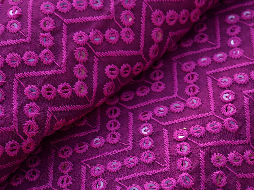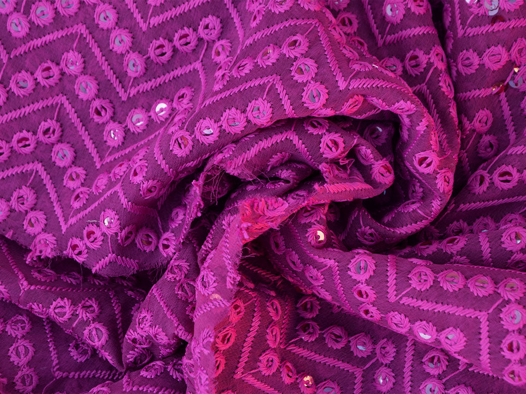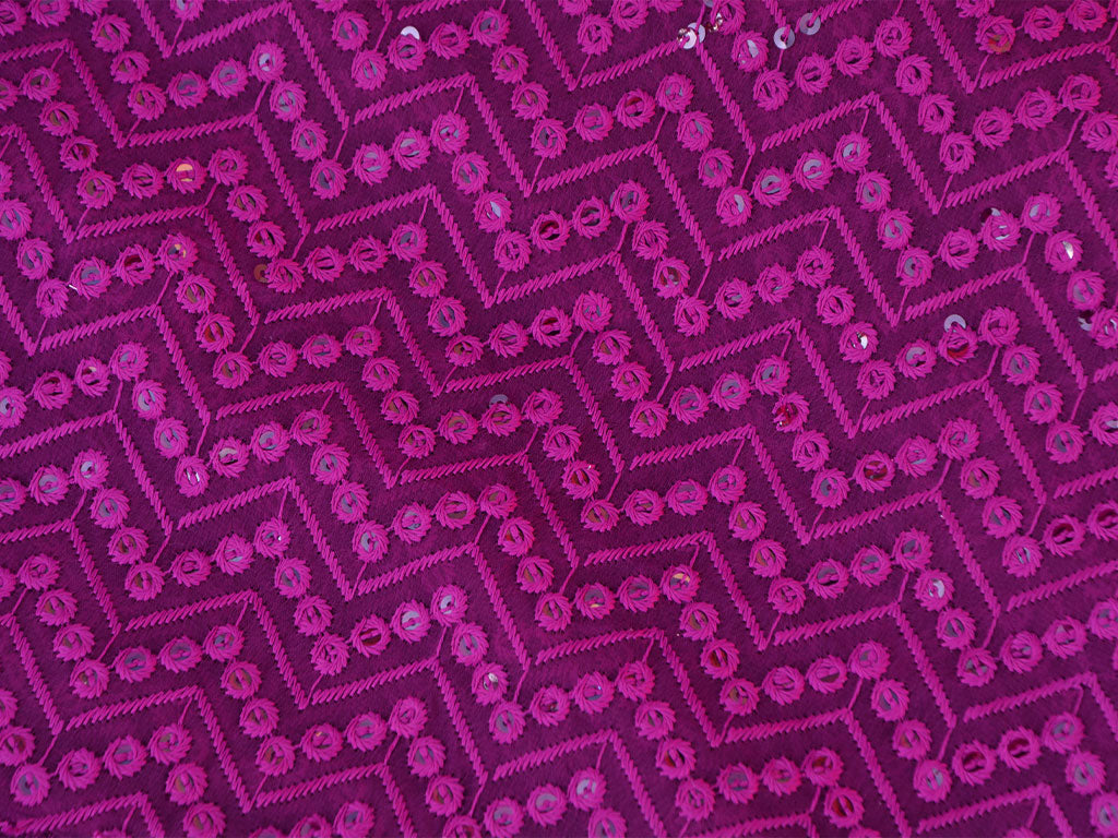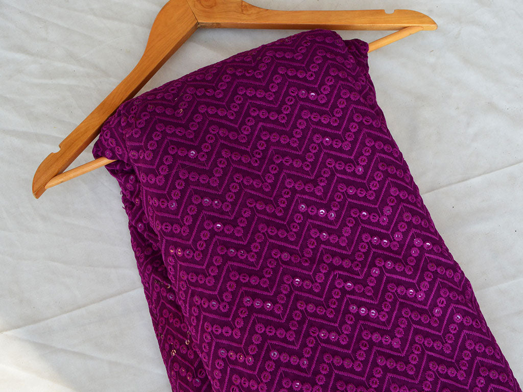 गहरे बैंगनी शेवरॉन हल्के धागे से कढ़ाई किया हुआ प्रीमियम जॉर्जेट कपड़ा