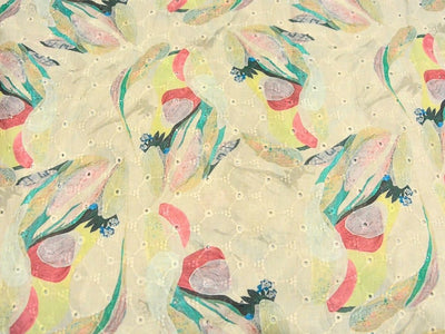 Off White 100 % Pure Cotton Chikan Embroidered Fabric