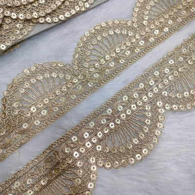 Embroidered lace trims used to adorn borders of various garments, are available in various colors and different styles. These lace borders are hand embroidered with zari and silk threads. Saree borders look alluring with these bordered laces. Mirrorwork, acrylic stones, pearls, and rhinestones are used on these Lace borders. These fancy trims are used by fashion designers for embellishing sarees, dresses, gowns, and other indo-western dresses