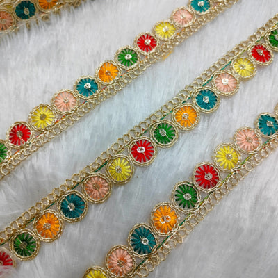 Embroidered lace trims used to adorn borders of various garments, are available in various colors and different styles. These lace borders are hand embroidered with zari and silk threads. Saree borders look alluring with these bordered laces. Mirrorwork, acrylic stones, pearls, and rhinestones are used on these Lace borders. These fancy trims are used by fashion designers for embellishing sarees, dresses, gowns, and other indo-western dresses