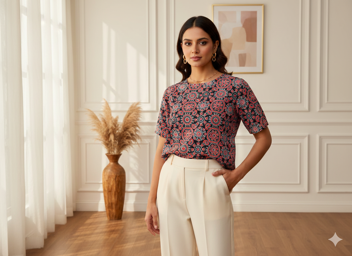 प्रीमियम बटर क्रेप फ़ैब्रिक एक शानदार, उच्च गुणवत्ता वाला कपड़ा है जो अपनी मुलायम, चिकनी बनावट और सुरुचिपूर्ण ड्रेप के लिए जाना जाता है। इस कपड़े की एक नाजुक, थोड़ी झुर्रीदार सतह है, जो इसे एक संयमित लेकिन परिष्कृत रूप देती है। इस कपड़े पर लागू डिजिटल प्रिंटिंग तकनीक जीवंत, जटिल पैटर्न और तेज स्पष्टता के साथ डिजाइन की अनुमति देती है, जो इसे ड्रेस, स्कर्ट, ब्लाउज और यहां तक कि स्कार्फ जैसे फैशन-फॉरवर्ड परिधानों के लिए आदर्श बनाती है।