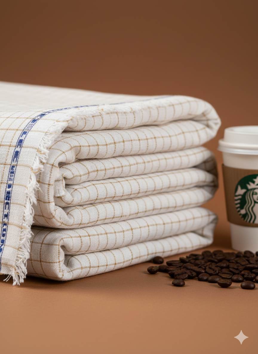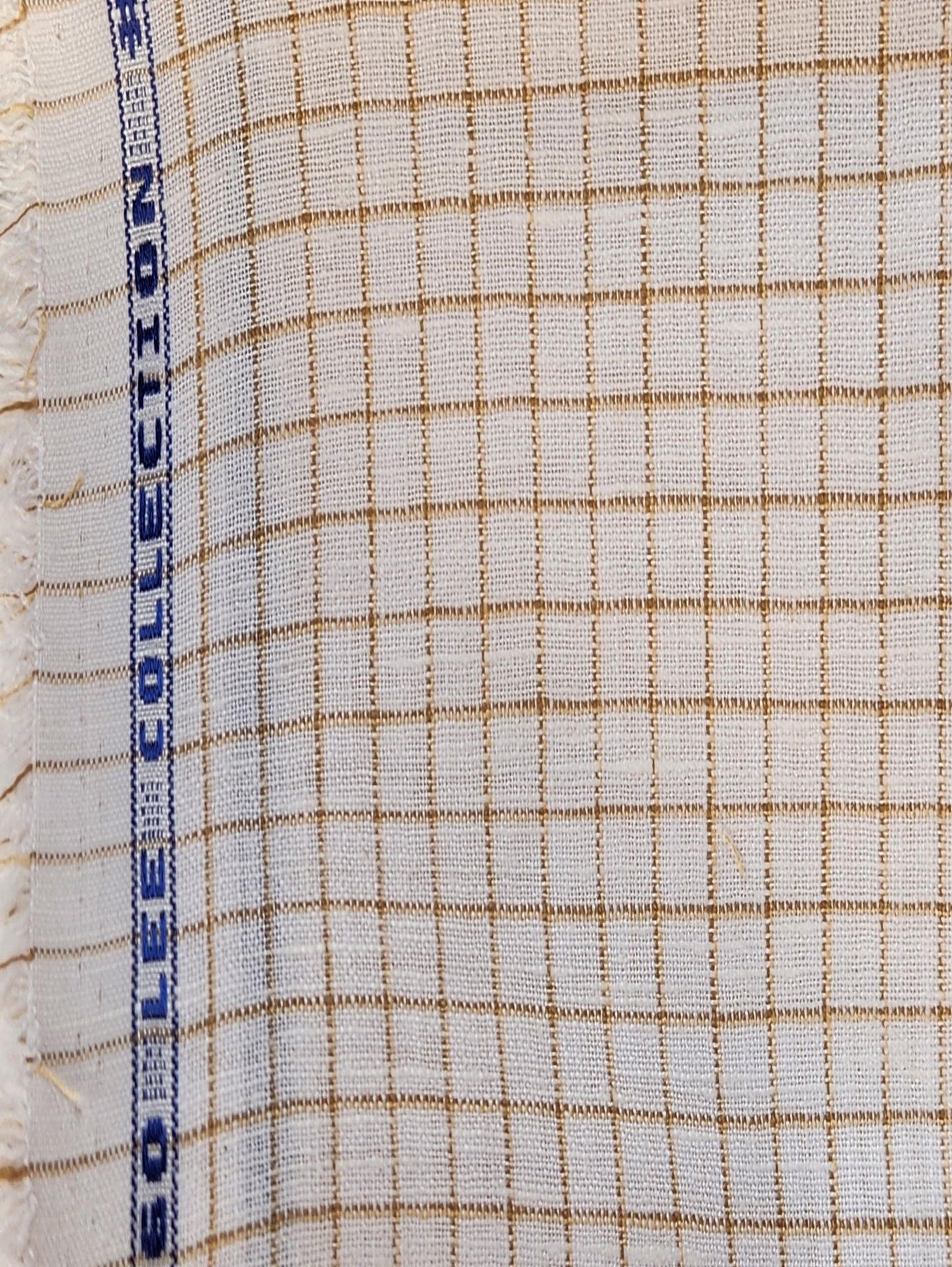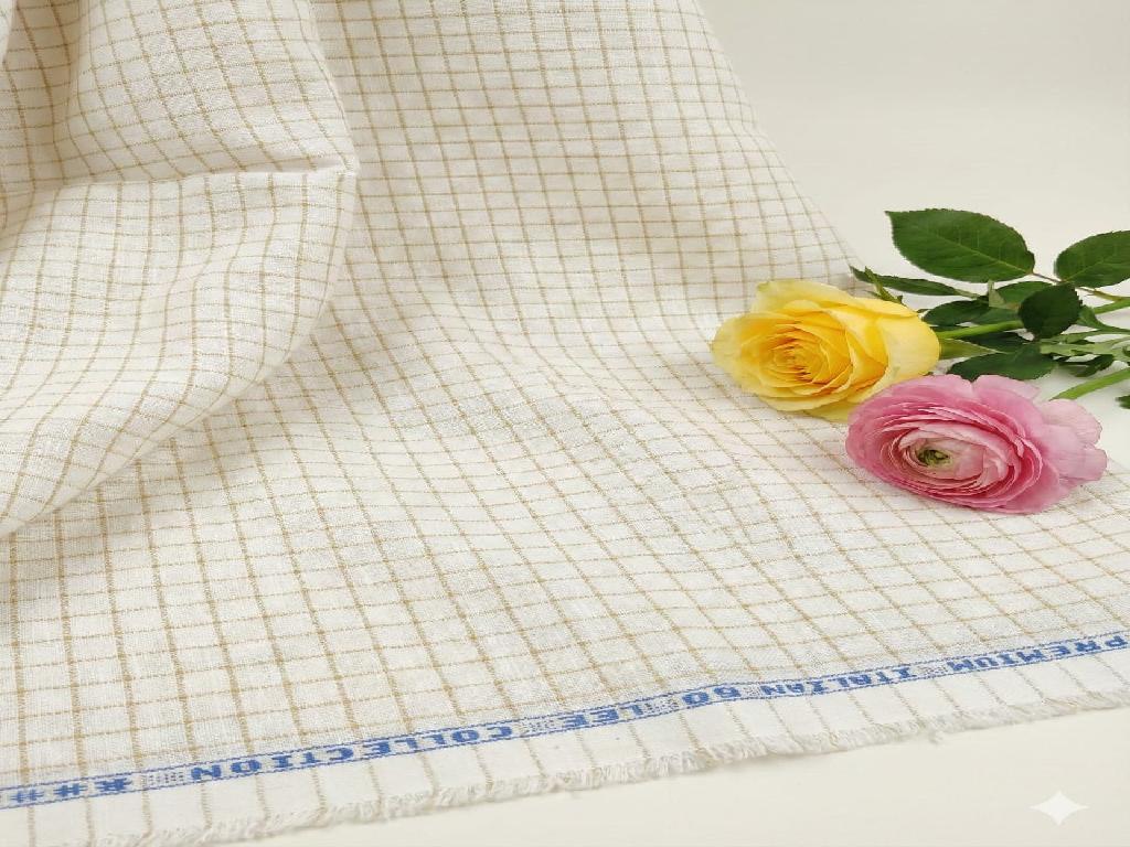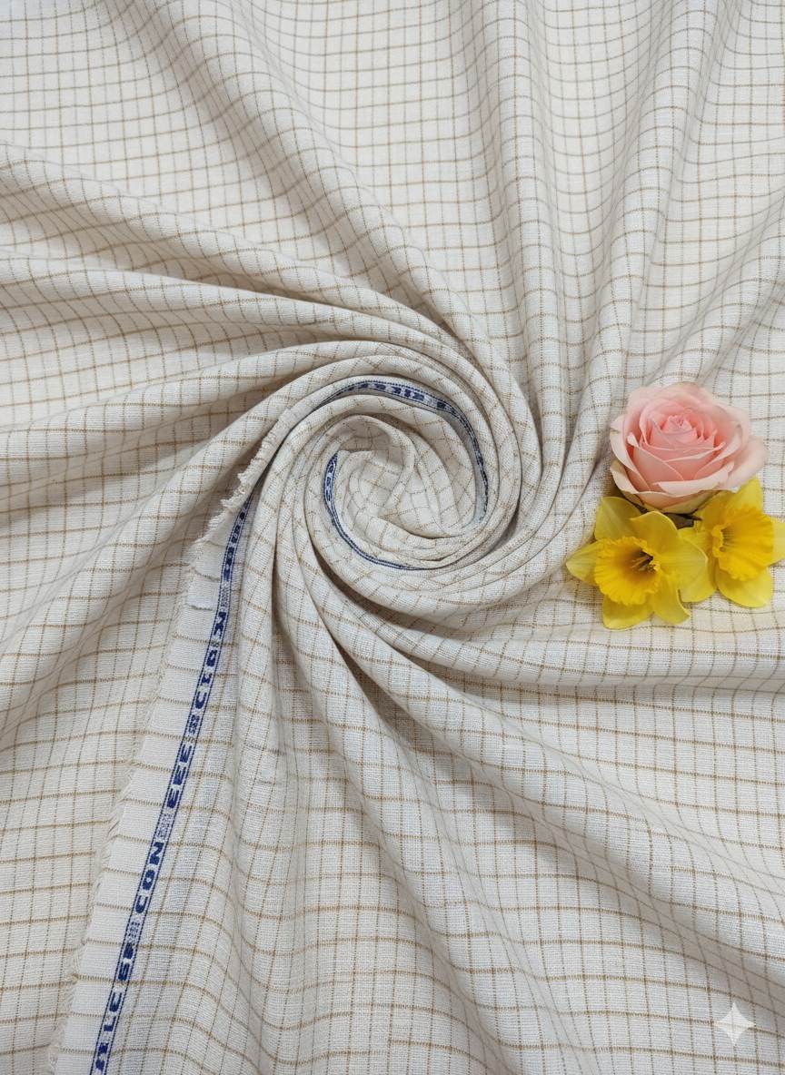 Off White Cotton Linen with Khakee Checks