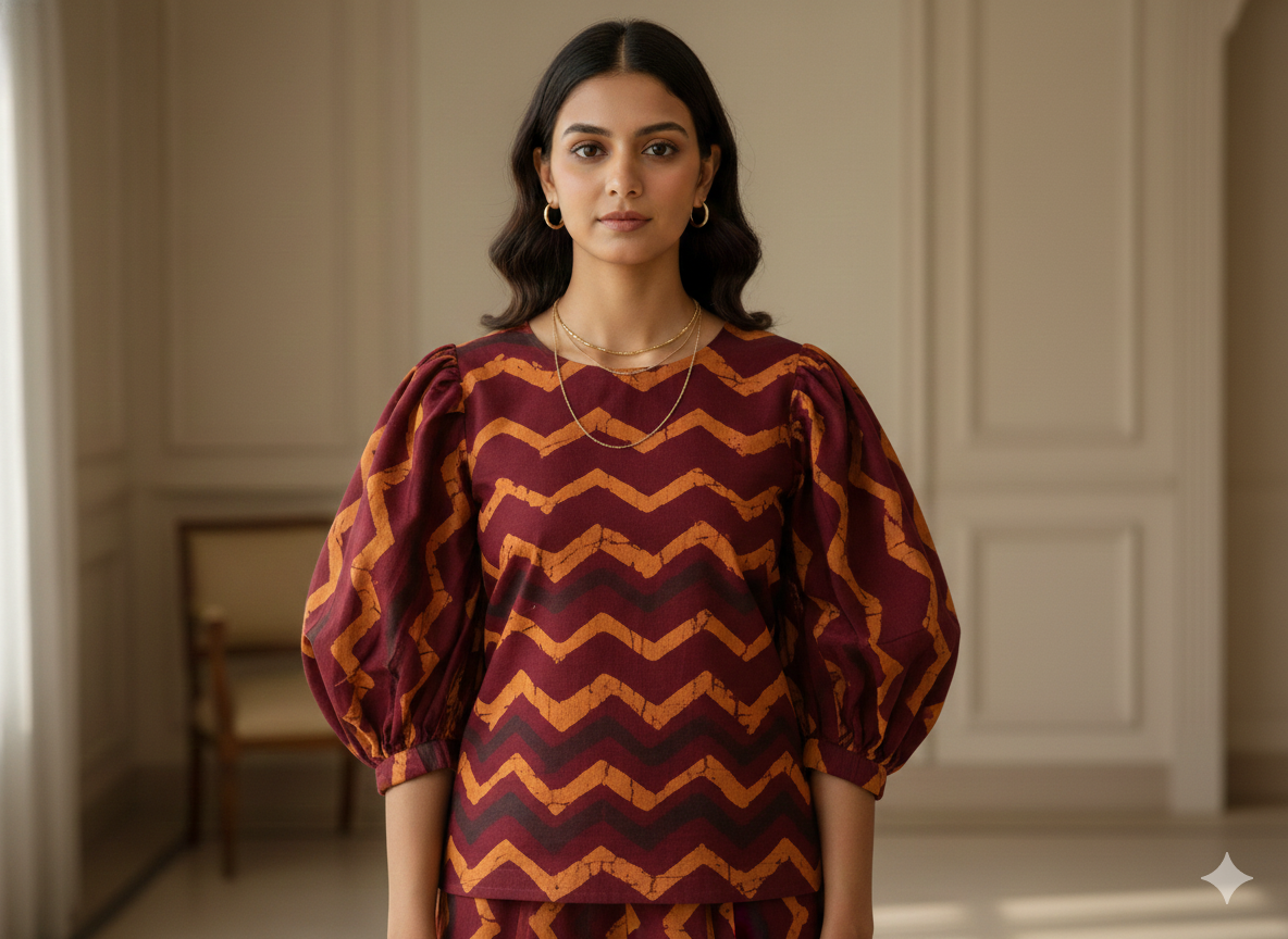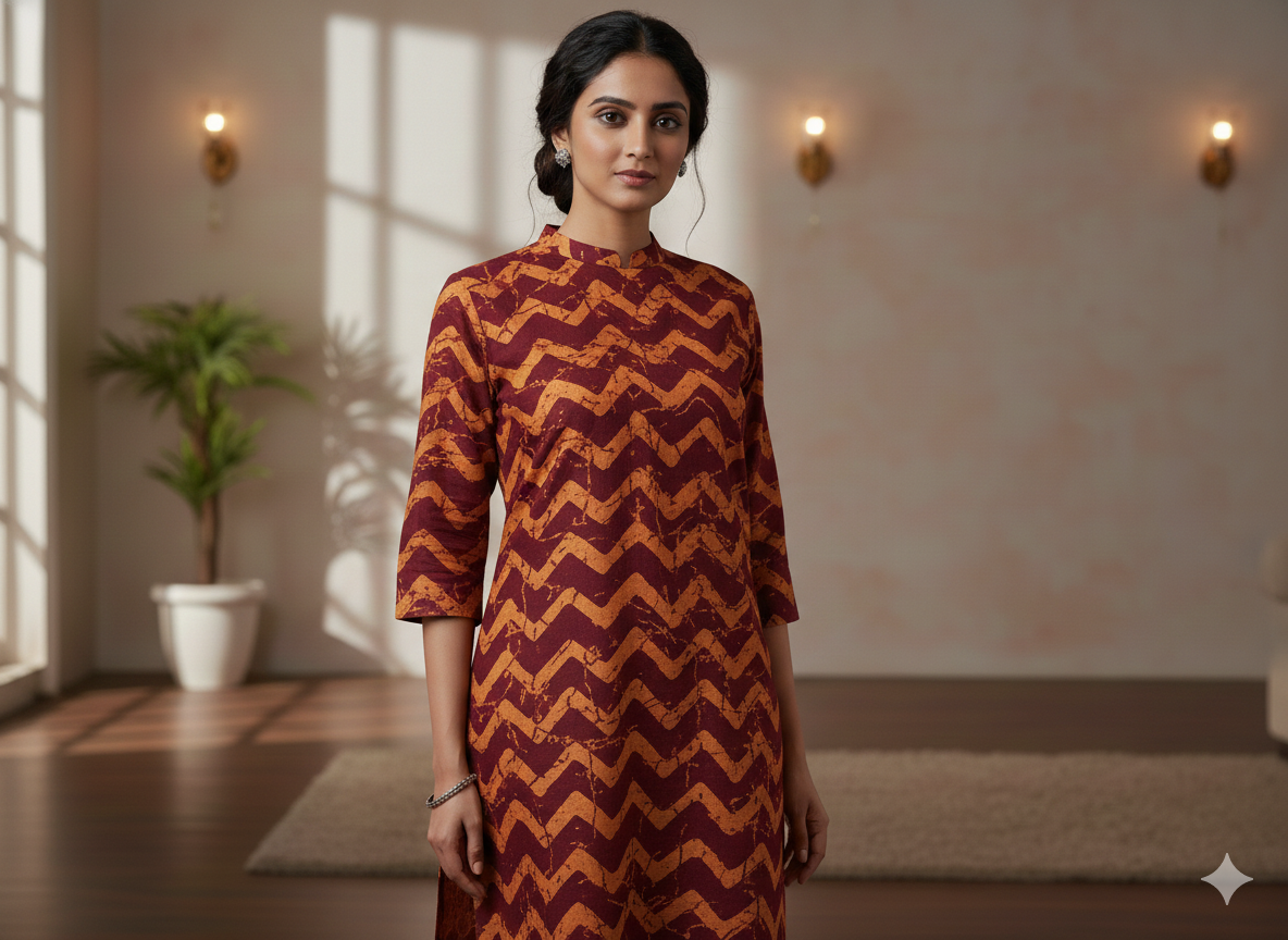 मैरून शेवरॉन शुद्ध सूती कपड़ा