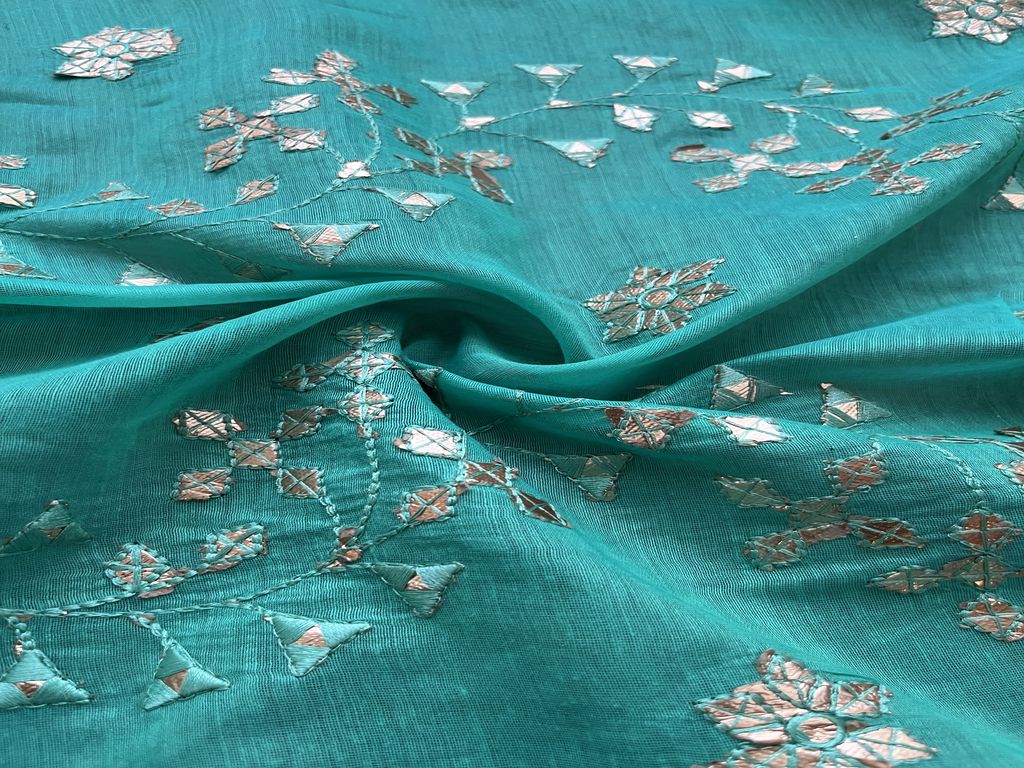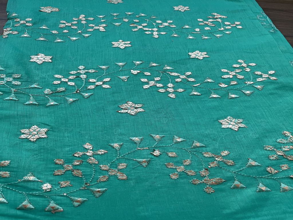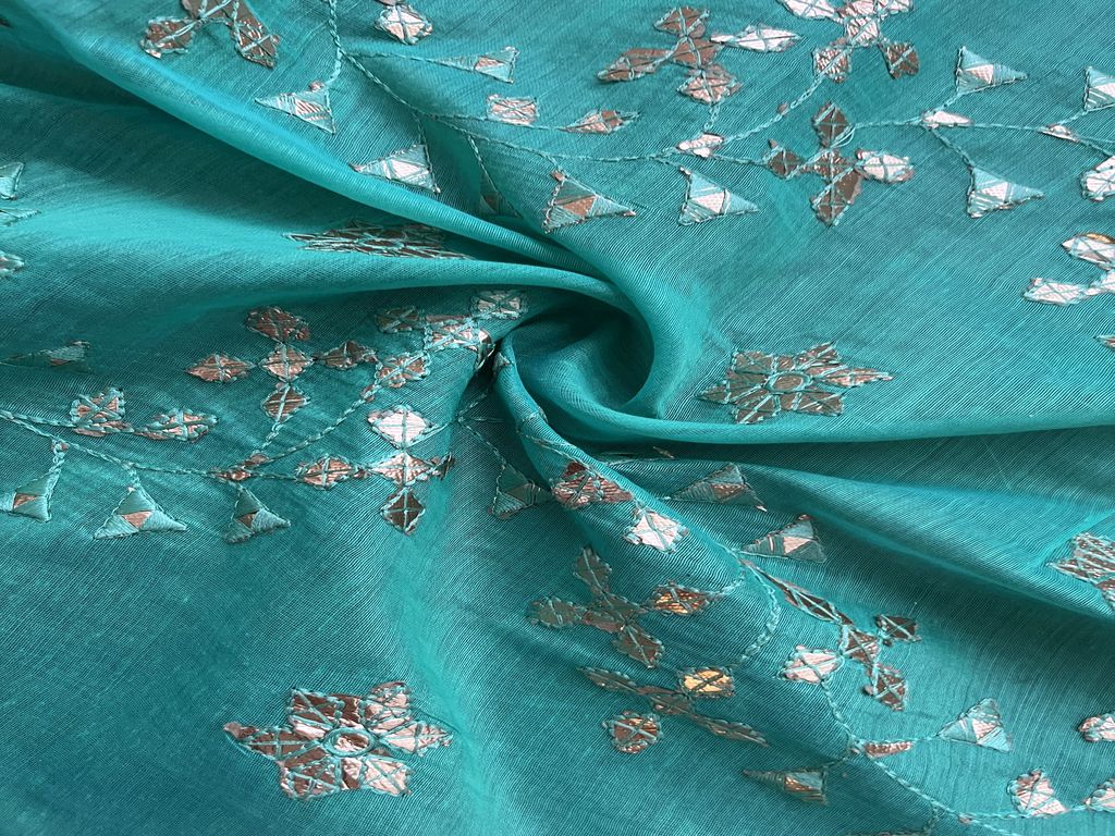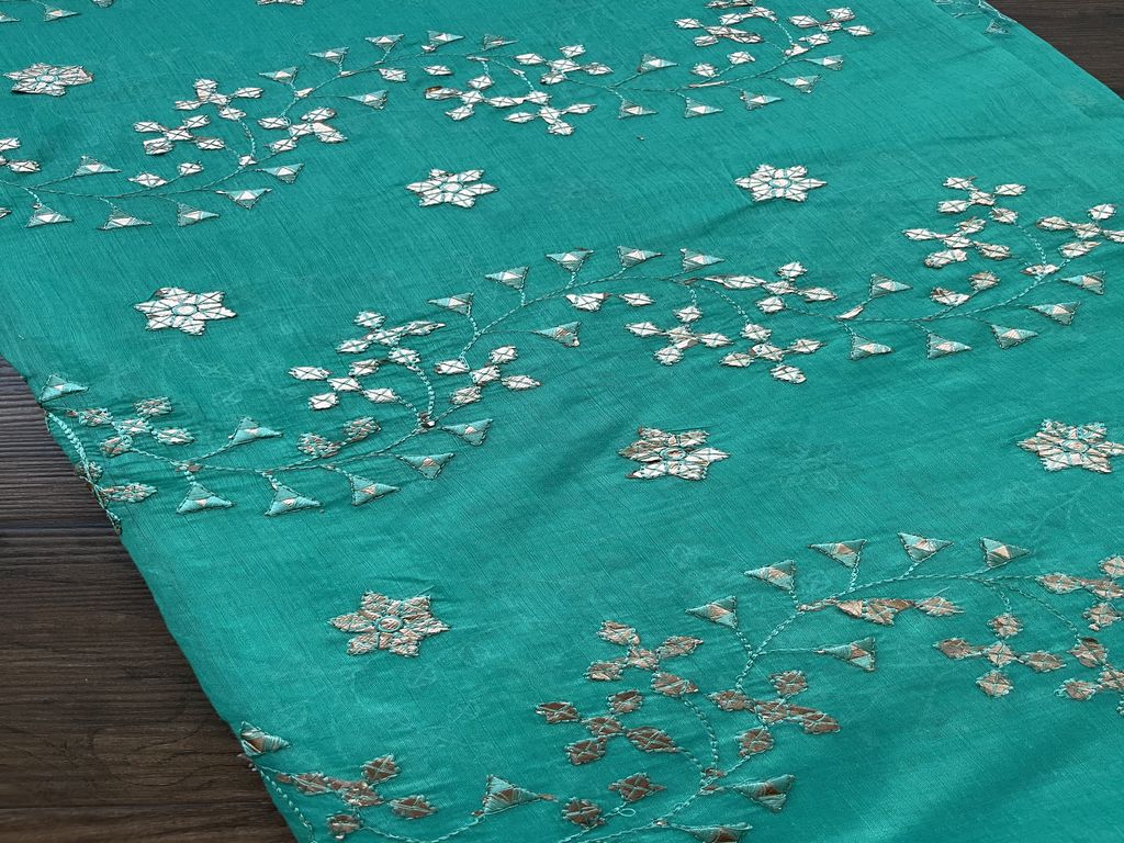 हरा सिल्वर कढ़ाई वाला गोटा पट्टी चंदेरी कपड़ा