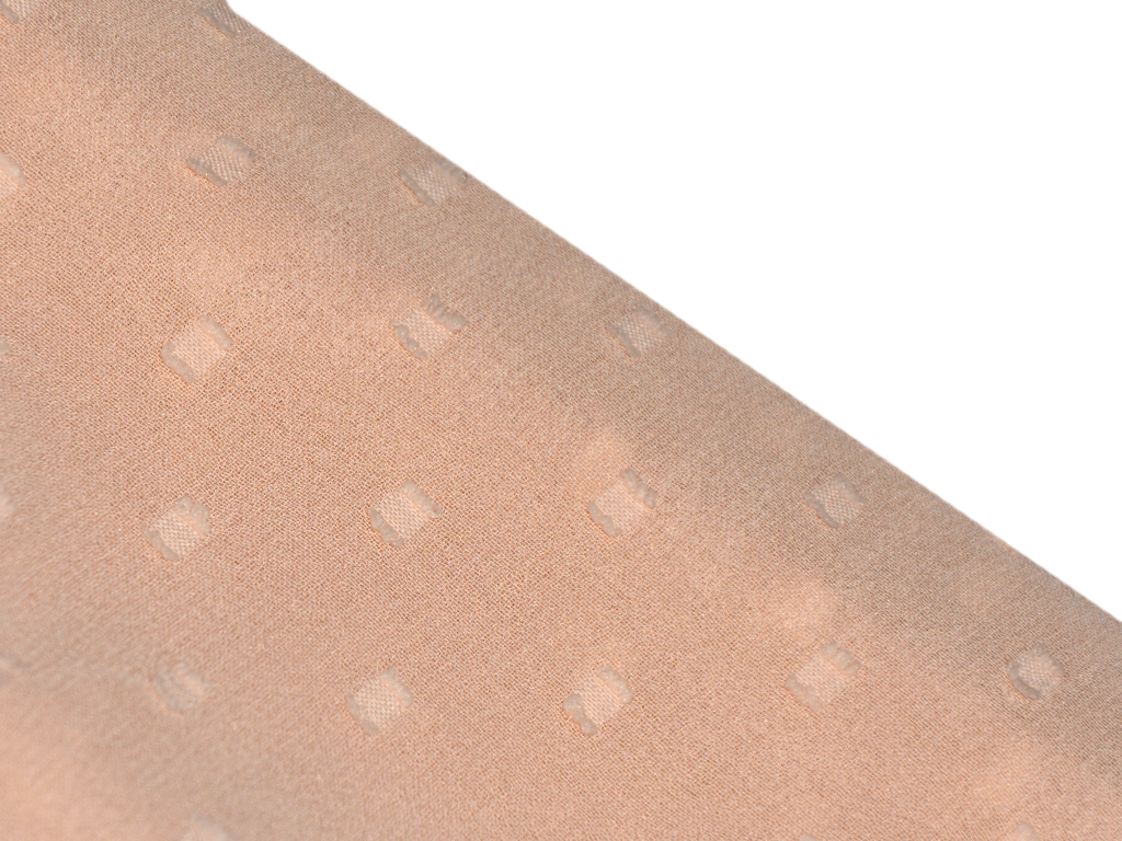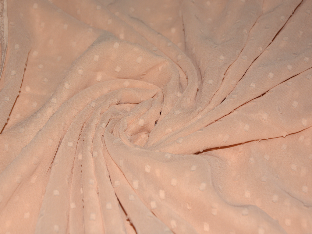 पीच पोल्का डॉटेड कढ़ाई जॉर्जेट फैब्रिक