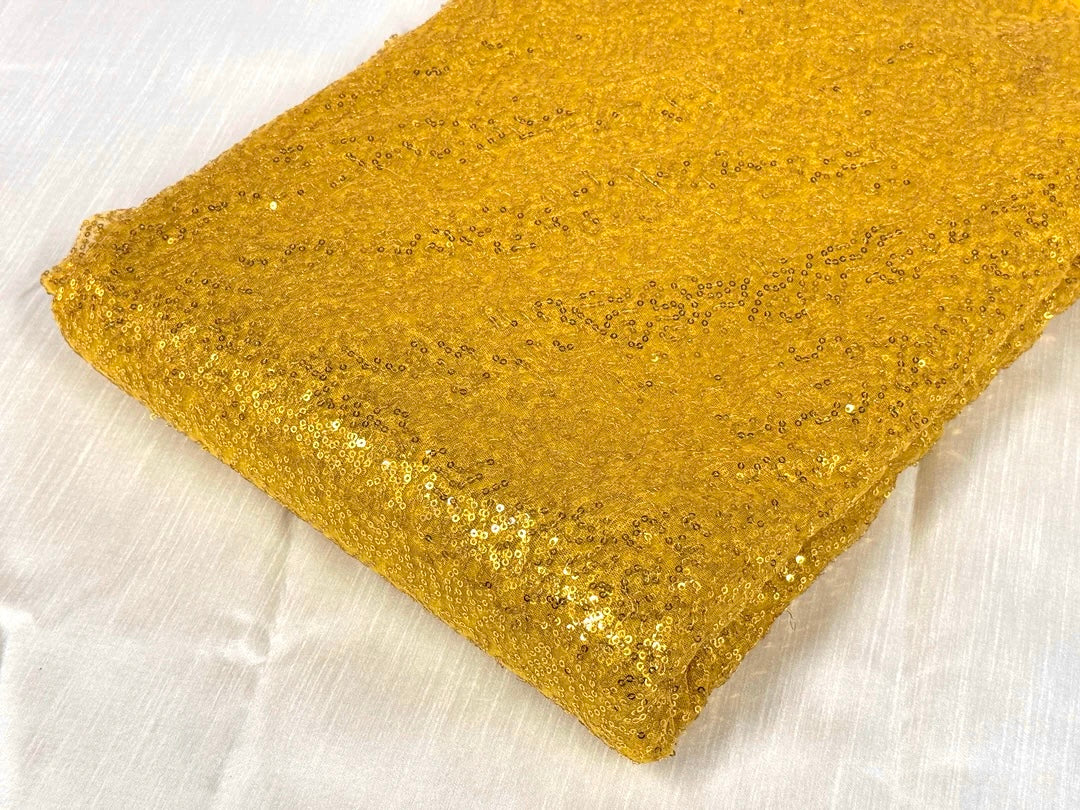 पीले सेक्विन कढ़ाई नेट फैब्रिक