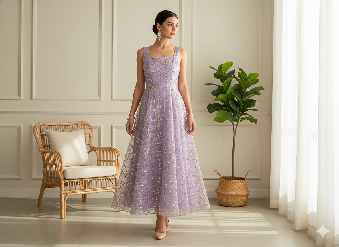 सेक्विन कढ़ाई वाला ऑर्गेना कपड़ा एक शानदार और सुरुचिपूर्ण कपड़ा है, जो ग्लैमरस और आकर्षक डिज़ाइन बनाने के लिए एकदम सही है। पारदर्शी, हल्के ऑर्गेना से बने इस कपड़े में जटिल कढ़ाई है जो चमकदार सेक्विन से सजी है, जो गहराई और चमक जोड़ती है।