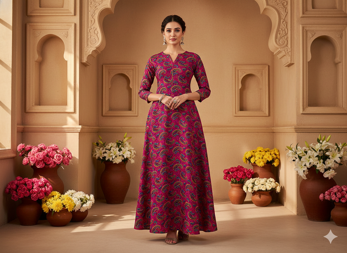गहरा गुलाबी पैस्ले डिजिटल प्रिंटेड प्रीमियम क्रेप फ़ैब्रिक