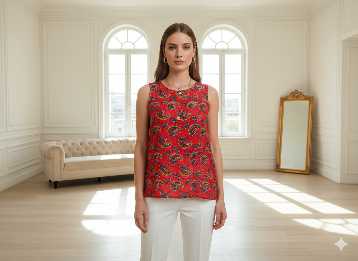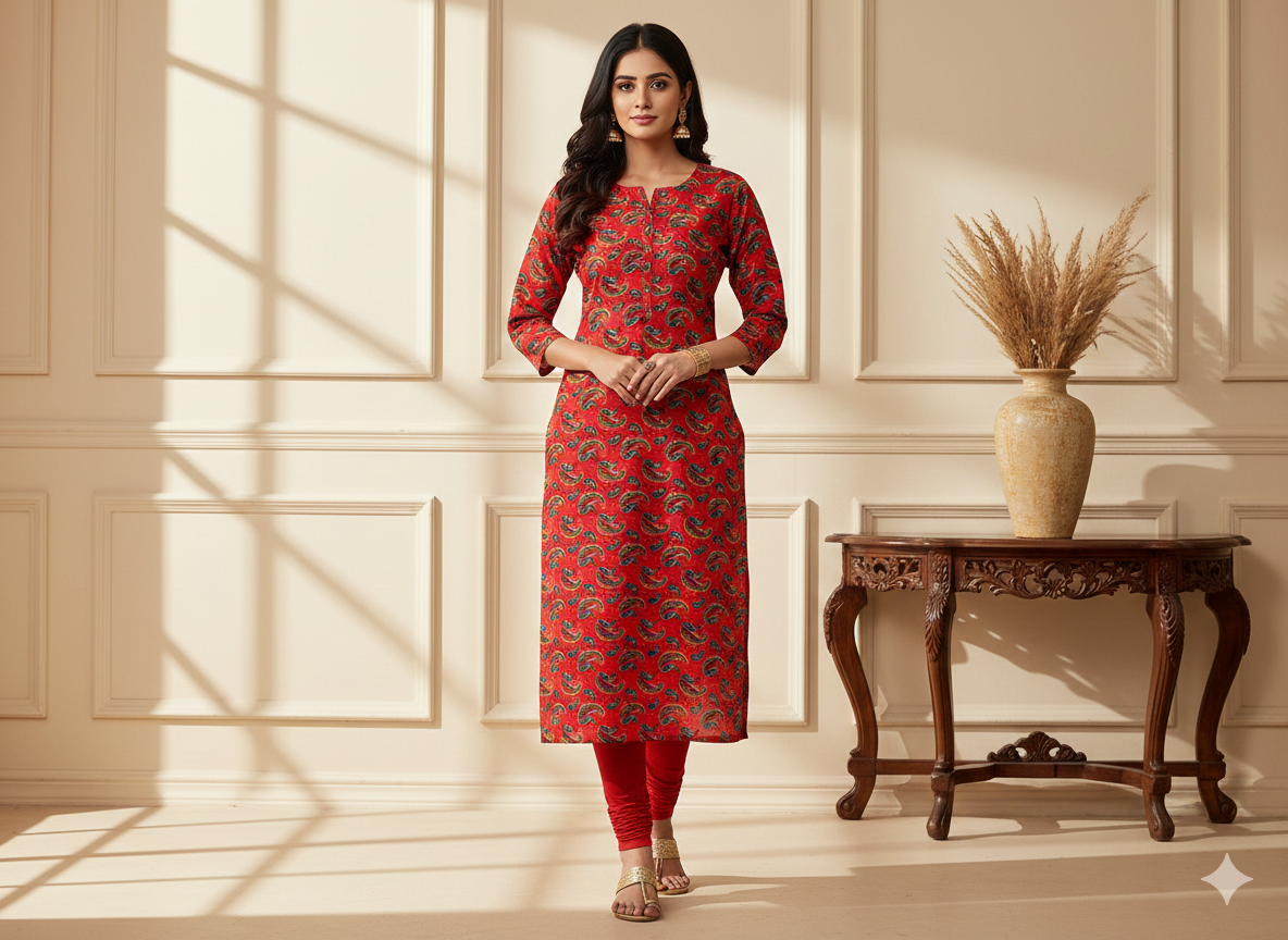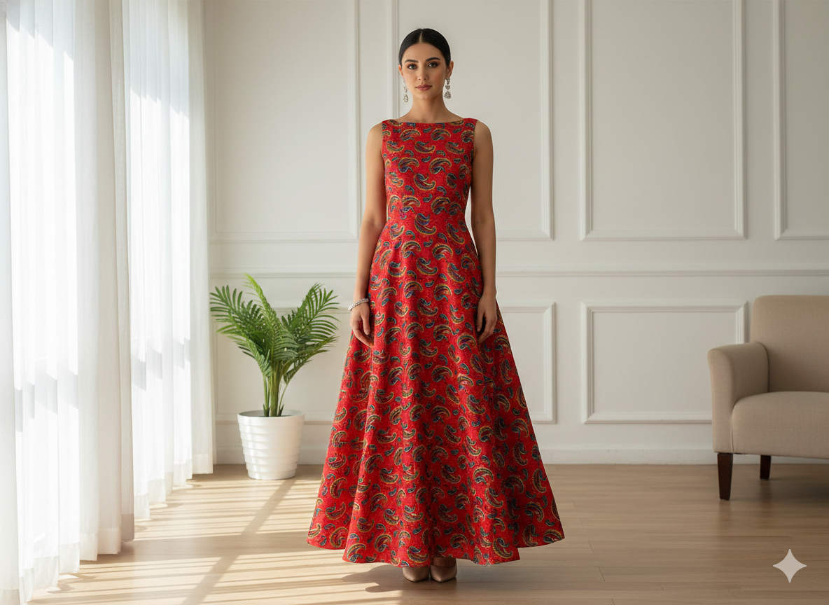 लाल पैस्ले डिजिटल प्रिंटेड प्रीमियम क्रेप फ़ैब्रिक
