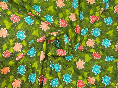 Grass Green Floral Digitally Printed Butter Crepe Fabric