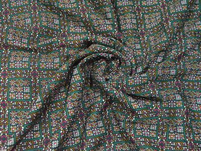 Green Square Block Dgitally Printed Butter Crepe Fabric