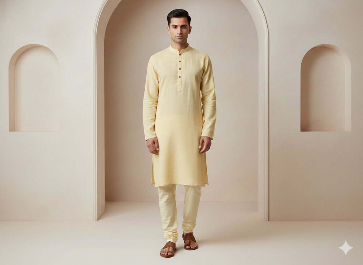 हल्का पीला सादा सूती लिनन कपड़ा