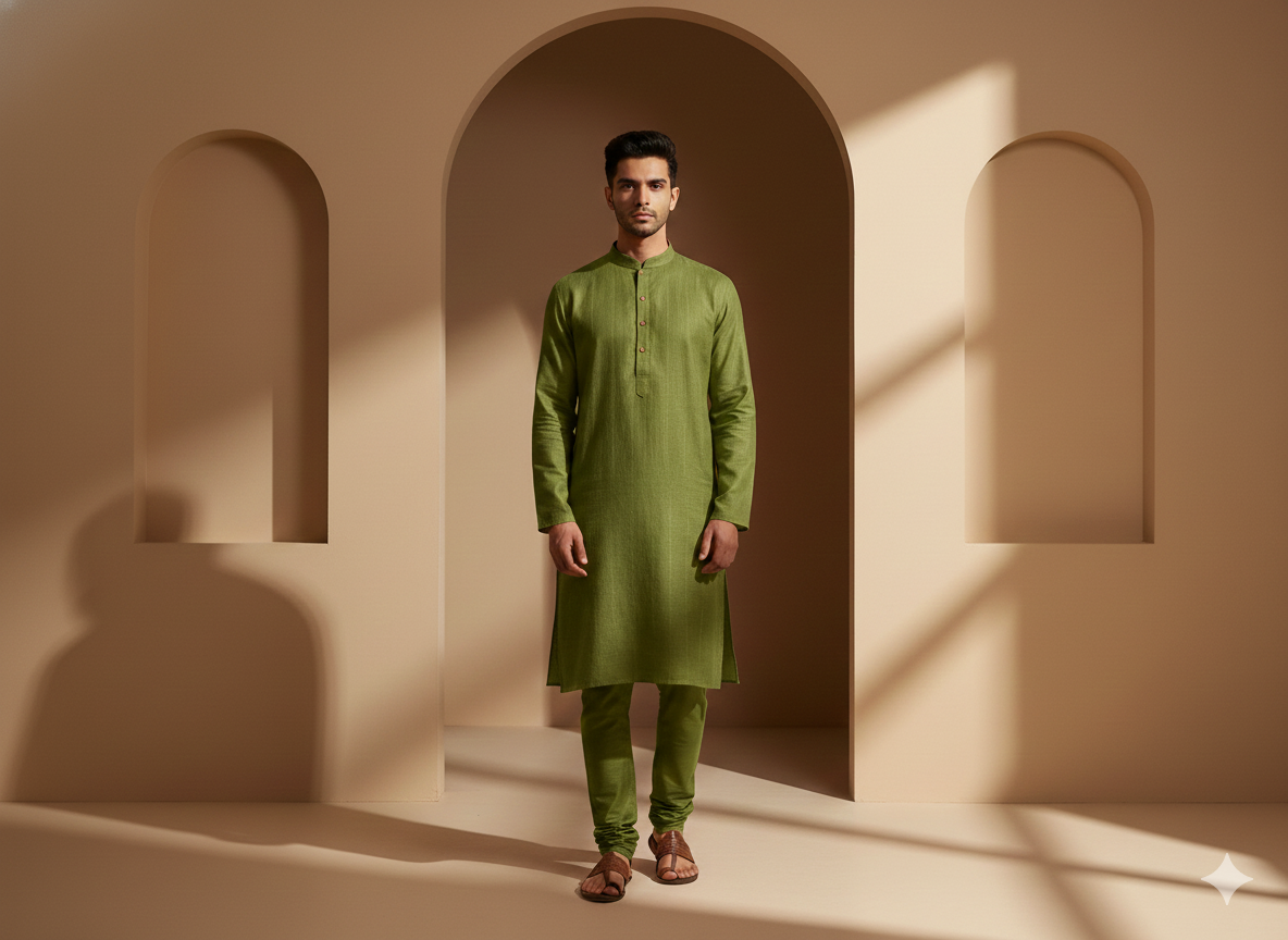 मॉस ग्रीन कॉटन लिनन फ़ैब्रिक